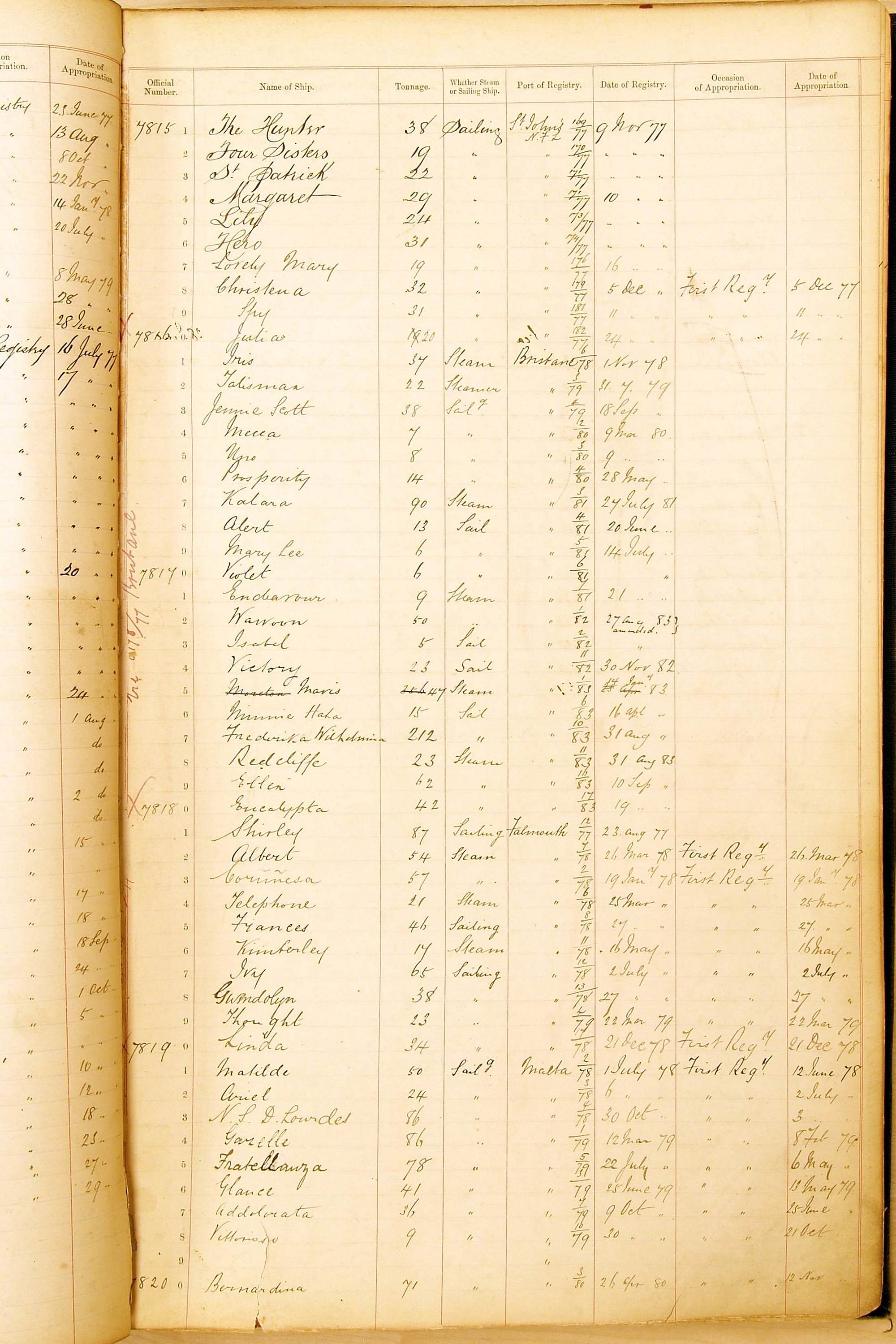 Bear in mind that the ships names in the Appropriation Books are not the definitive name or spelling of the name, even though these are the central records for the whole system. As you can see, the entries are hand-written and derived from hand-written returns made by the various ports, themselves based on the hand-written shipping registers, based on what the port officials thought the person registering the ship was saying or had hand-written down.