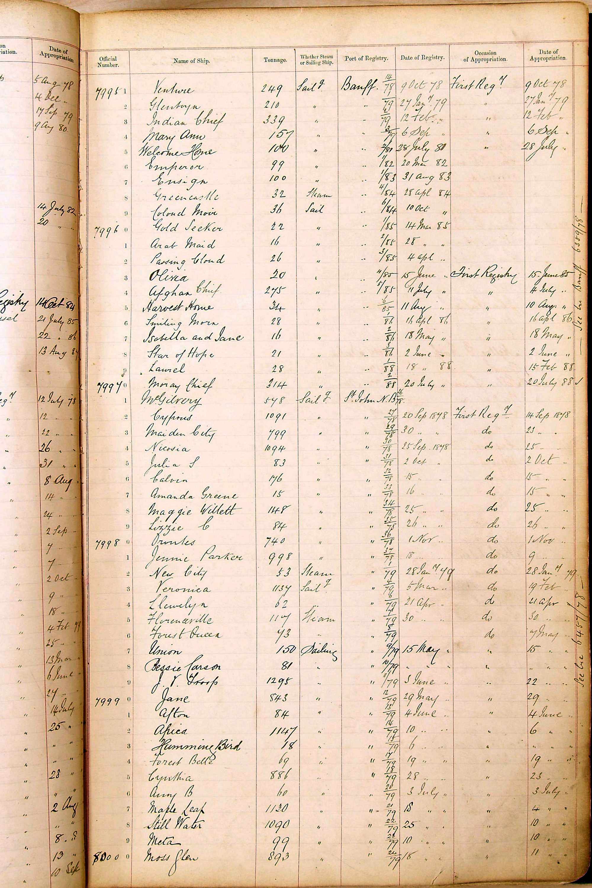 The ship names recorded are those that the ships carried at the time that their official numbers were allocated - changes are sometimes noted, but the best source for changes of name are the shipping registers for the port, or alternatively the Mercantile Navy List.