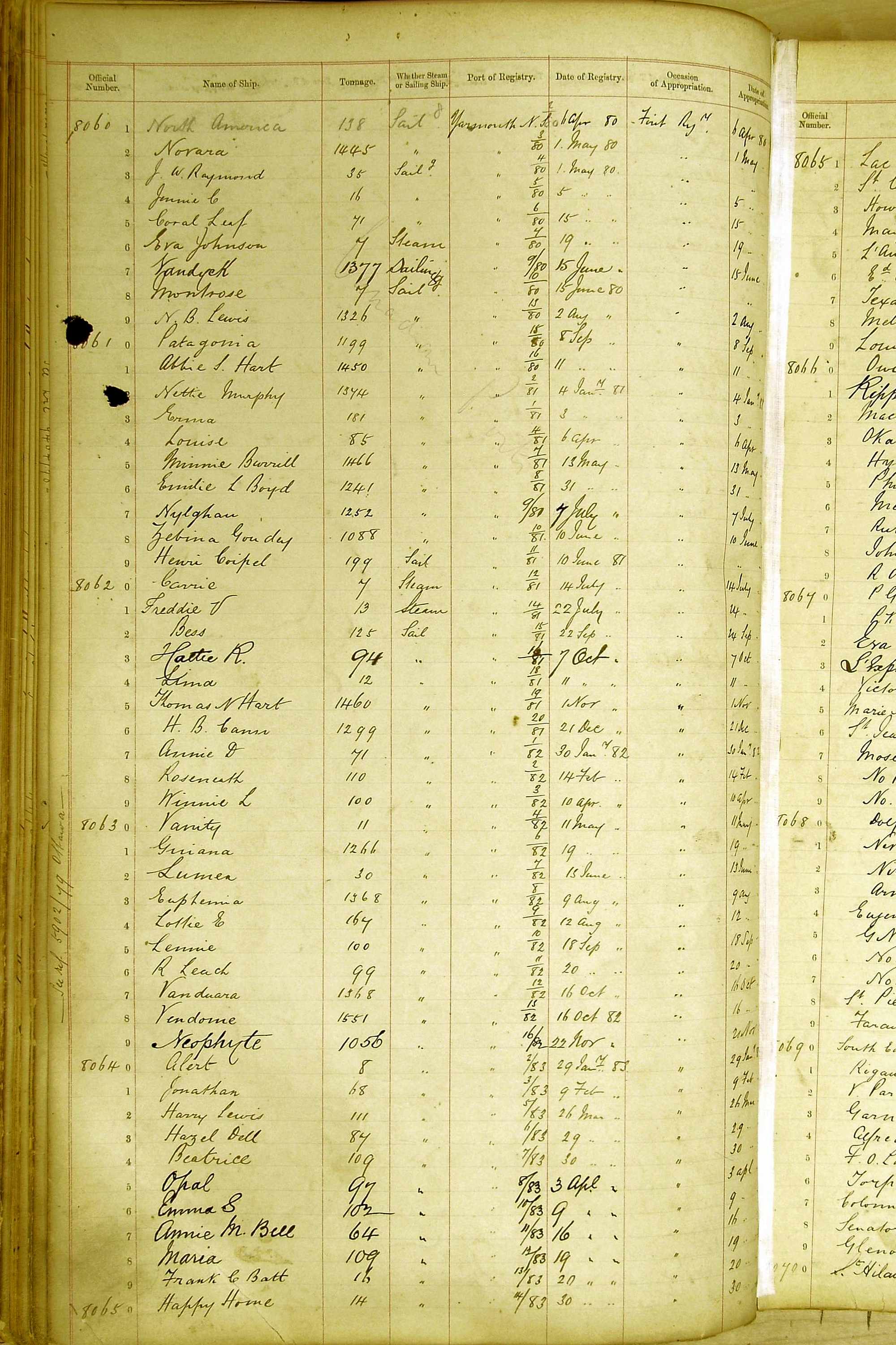 The ship names recorded are those that the ships carried at the time that their official numbers were allocated - changes are sometimes noted, but the best source for changes of name are the shipping registers for the port, or alternatively the Mercantile Navy List.