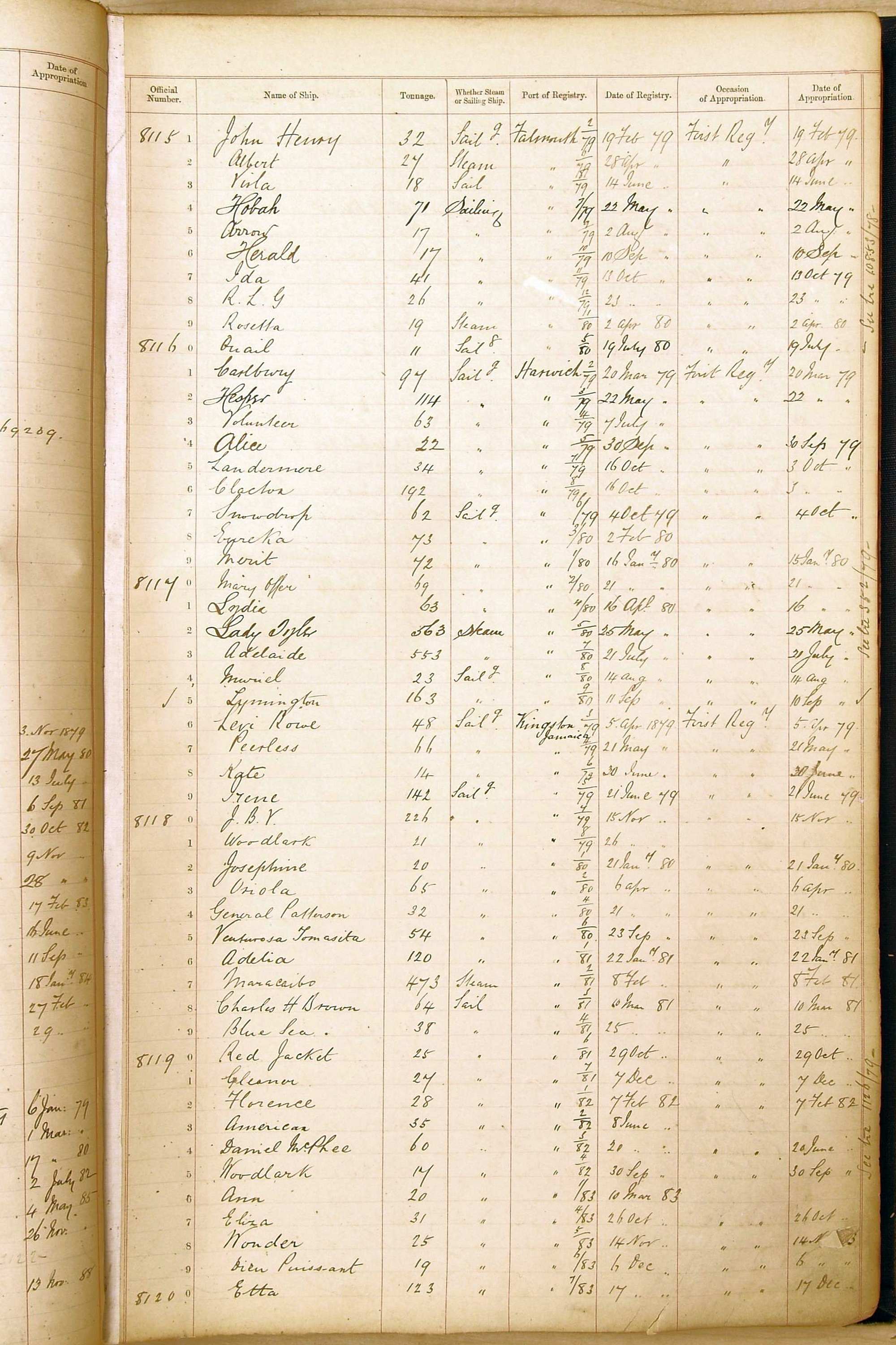 Bear in mind that the ships names in the Appropriation Books are not the definitive name or spelling of the name, even though these are the central records for the whole system. As you can see, the entries are hand-written and derived from hand-written returns made by the various ports, themselves based on the hand-written shipping registers, based on what the port officials thought the person registering the ship was saying or had hand-written down.