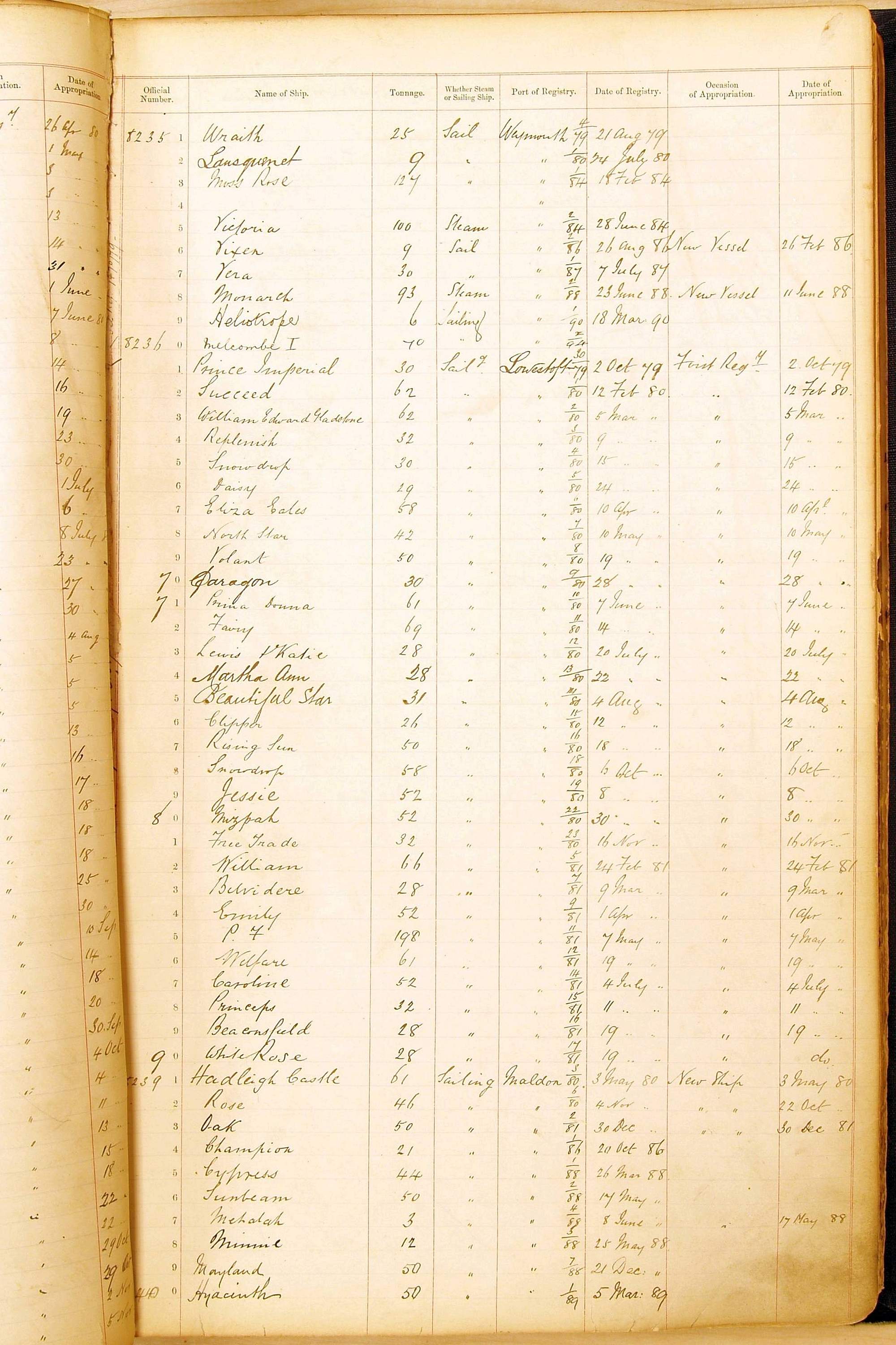The ship names recorded are those that the ships carried at the time that their official numbers were allocated - changes are sometimes noted, but the best source for changes of name are the shipping registers for the port, or alternatively the Mercantile Navy List.