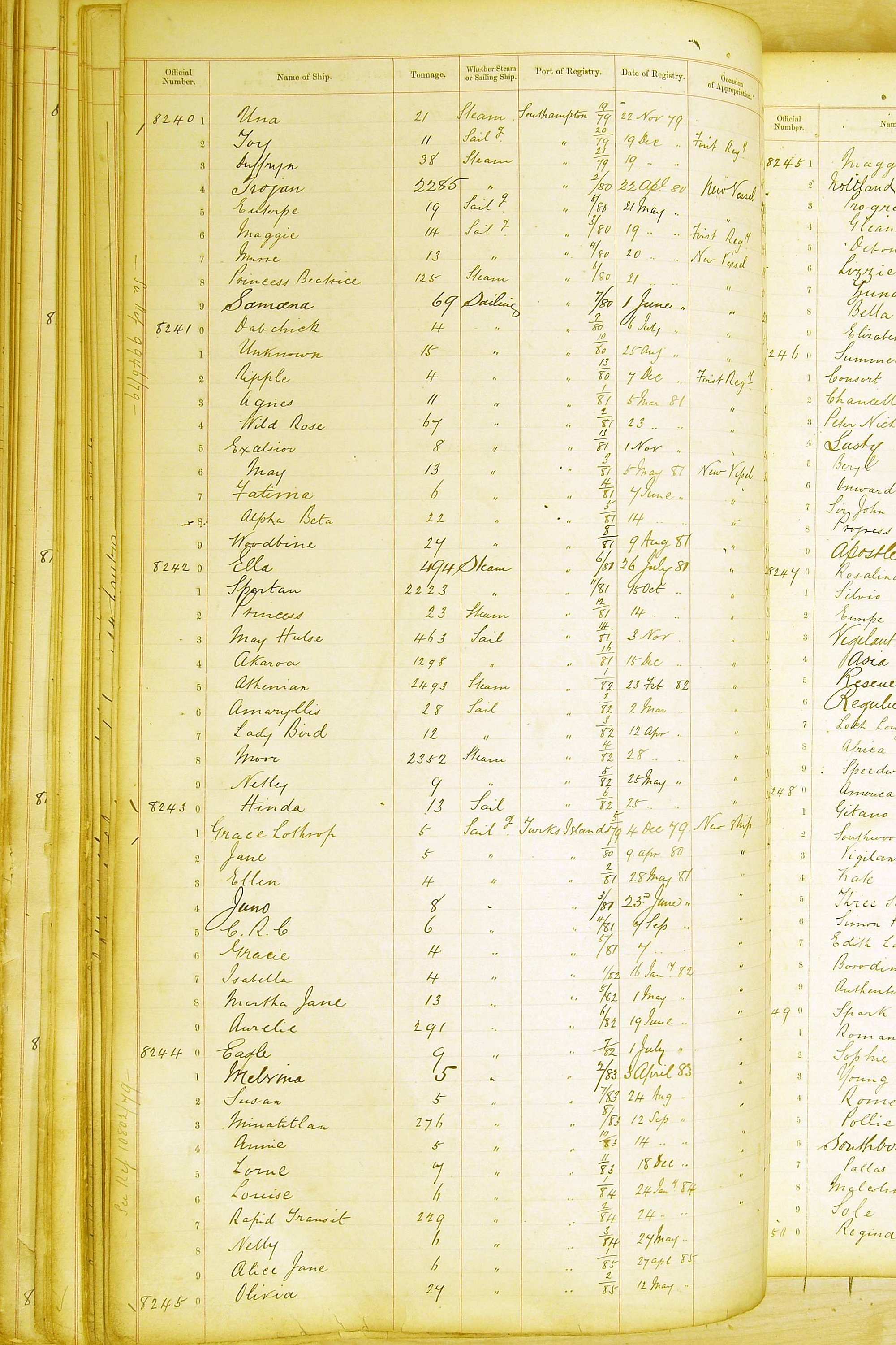 When the system of official numbers began on 16 April 1855, the British Ports of Registry were each allocated batches of official numbers. For official numbers up to 22200 you can see this allocation as a pencil note at the top of the page where the allocation began. A summary of the first allocation is shown here: Initial allocation of official numbers