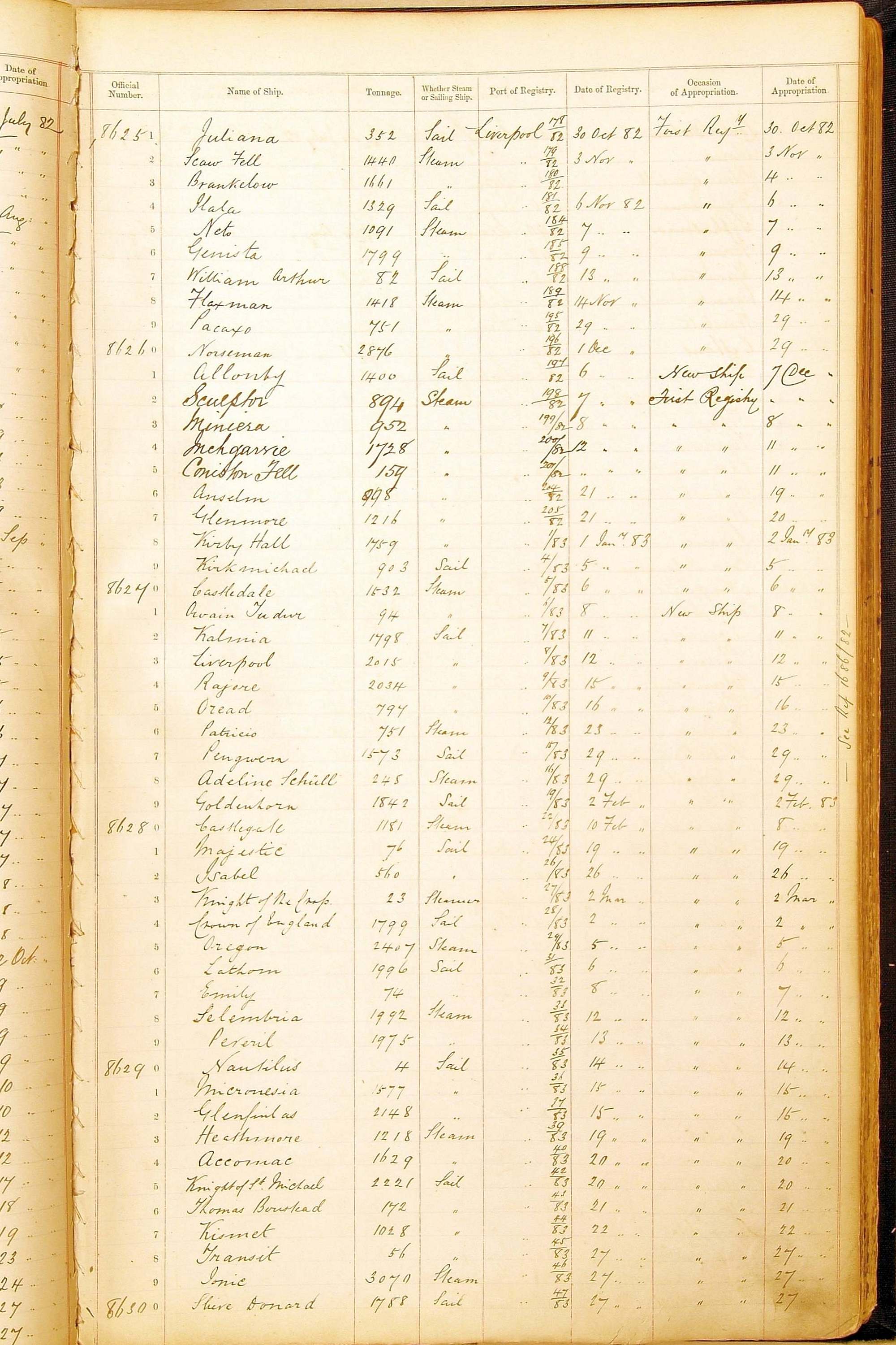 When the system of official numbers began on 16 April 1855, the British Ports of Registry were each allocated batches of official numbers. For official numbers up to 22200 you can see this allocation as a pencil note at the top of the page where the allocation began. A summary of the first allocation is shown here: Initial allocation of official numbers