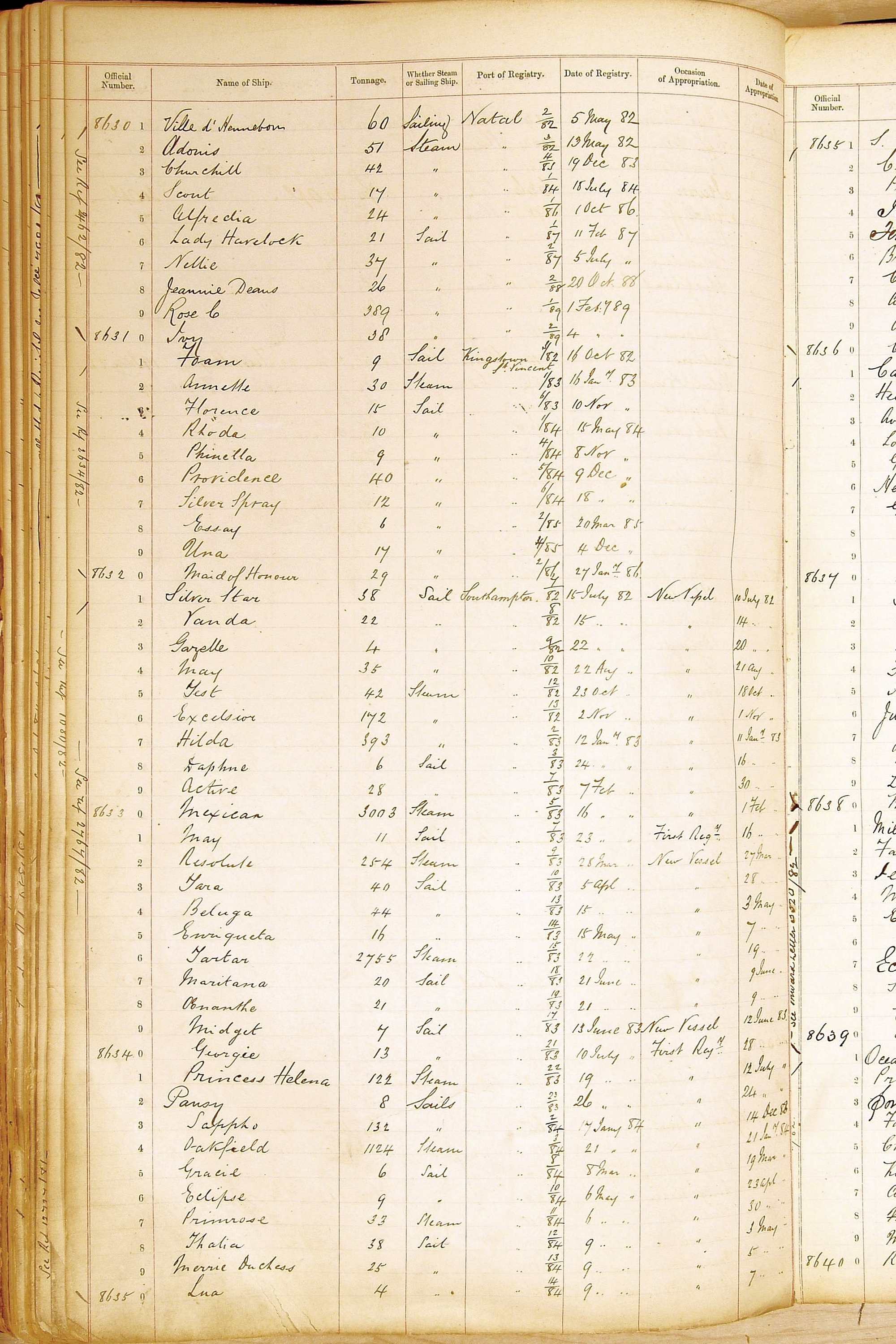 The ship names recorded are those that the ships carried at the time that their official numbers were allocated - changes are sometimes noted, but the best source for changes of name are the shipping registers for the port, or alternatively the Mercantile Navy List.