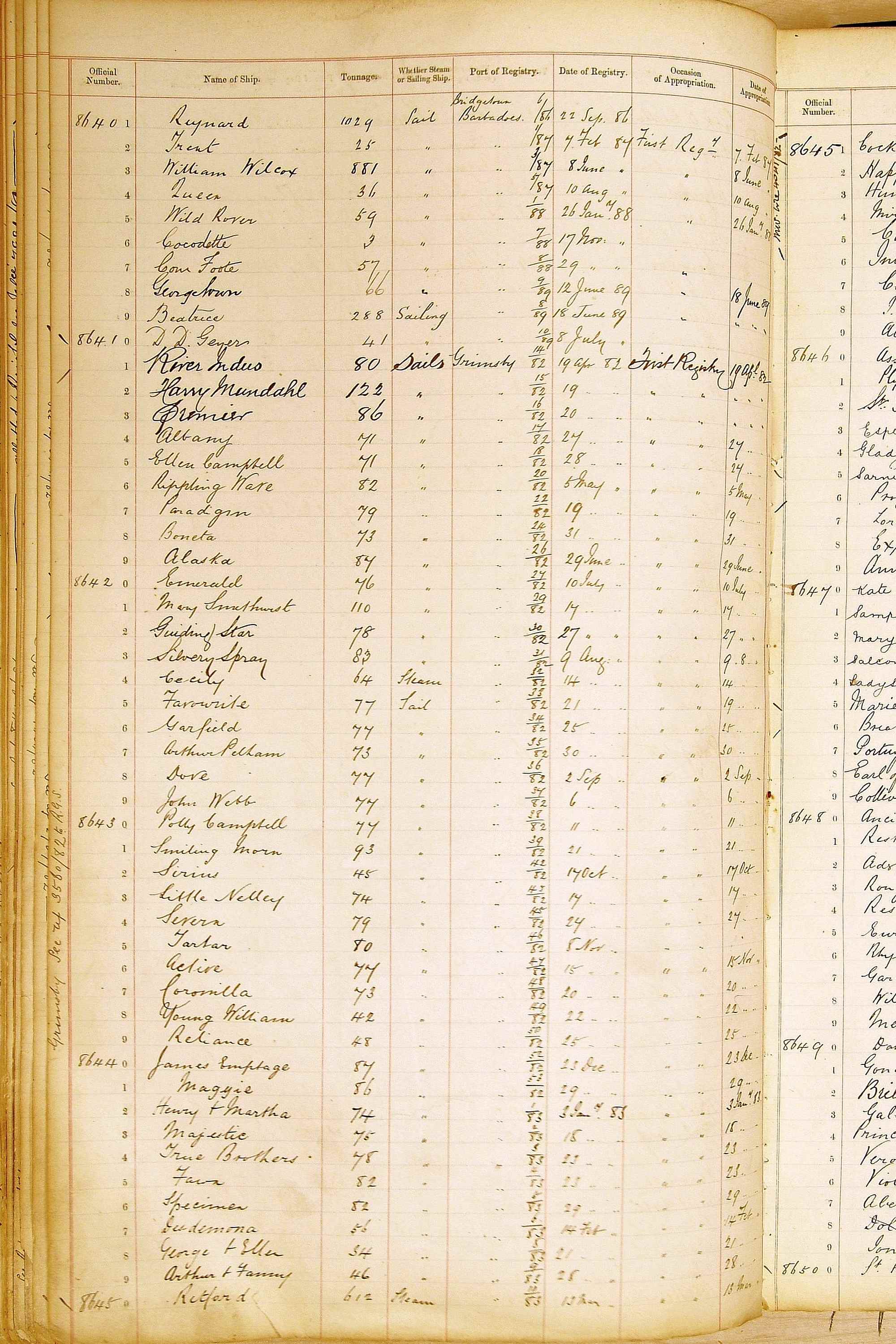The ship names recorded are those that the ships carried at the time that their official numbers were allocated - changes are sometimes noted, but the best source for changes of name are the shipping registers for the port, or alternatively the Mercantile Navy List.