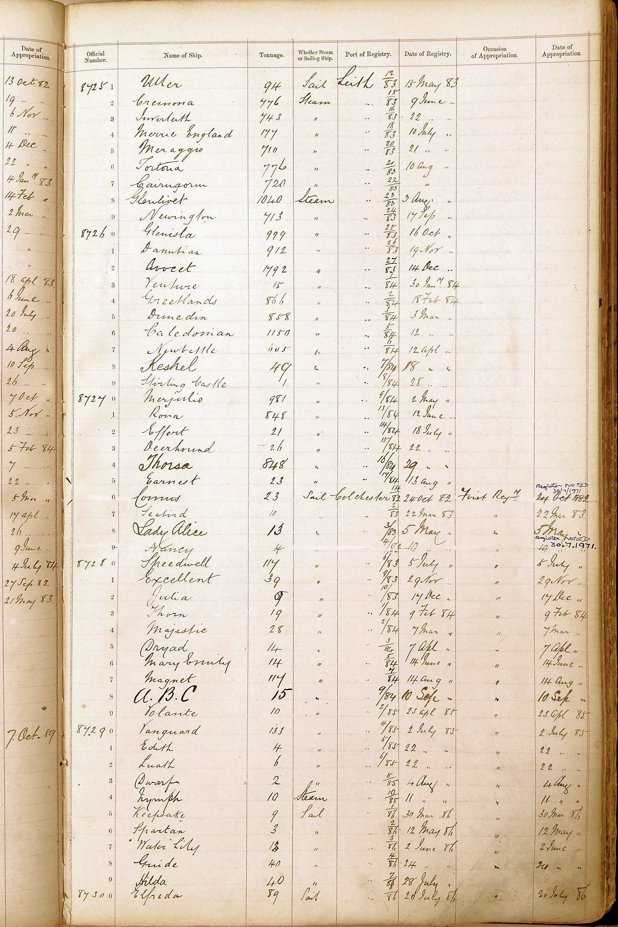 The ship names recorded are those that the ships carried at the time that their official numbers were allocated - changes are sometimes noted, but the best source for changes of name are the shipping registers for the port, or alternatively the Mercantile Navy List.