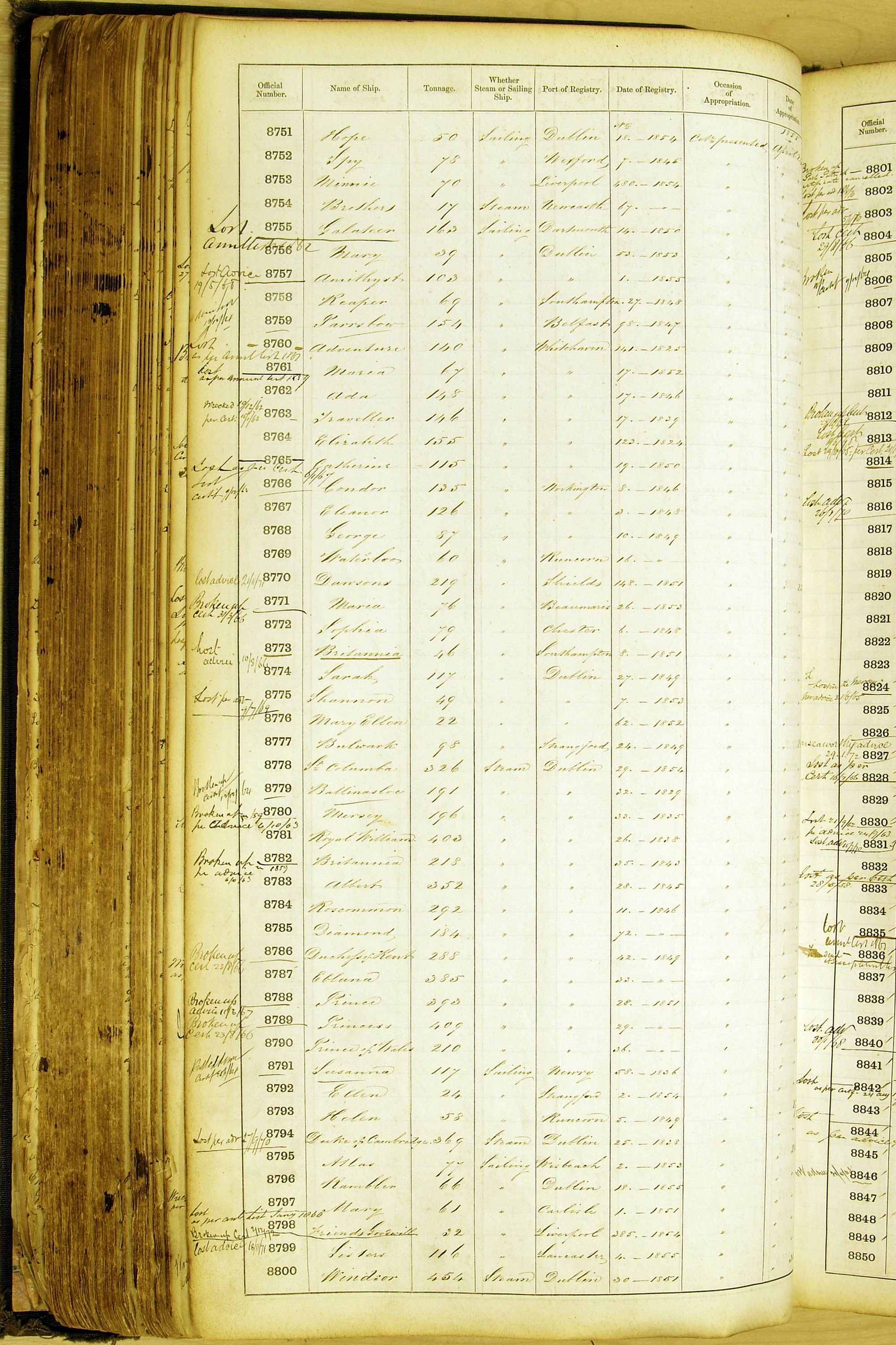 Especially in the first volume, there are frequent margin annotations against the entries which (if you can decipher them) can provide information on the ultimate fate of the ship. Typical entries are 'Lost as per cert[ificate] 20/6/58' or 'Sold foreigners per advice 8/4/67'. Beware - it is sometimes not easy to see which entry it refers to. However, these annotations may be a useful quick alternative to consulting the original Shipping Registers.