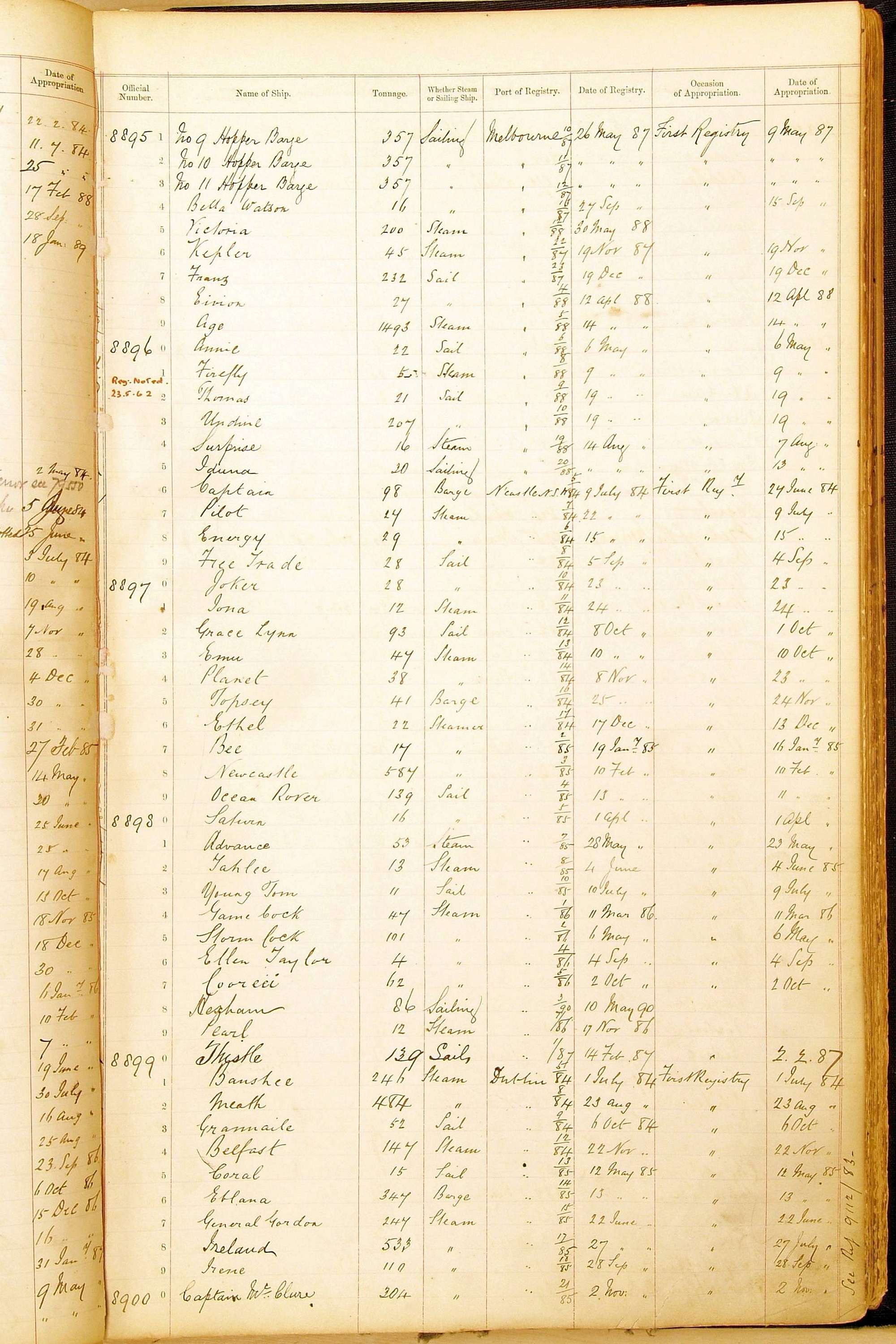 The ship names recorded are those that the ships carried at the time that their official numbers were allocated - changes are sometimes noted, but the best source for changes of name are the shipping registers for the port, or alternatively the Mercantile Navy List.