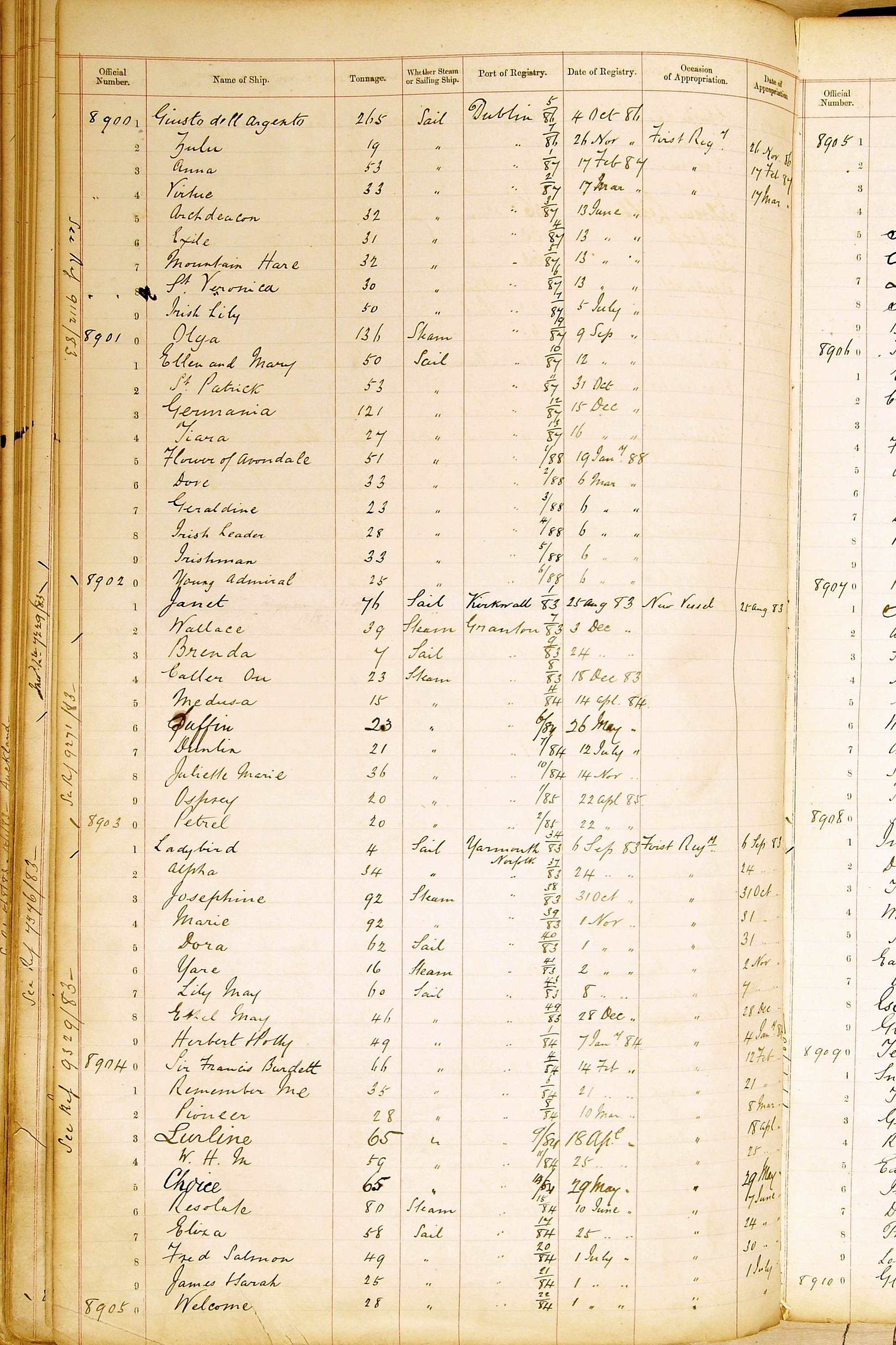 The ship names recorded are those that the ships carried at the time that their official numbers were allocated - changes are sometimes noted, but the best source for changes of name are the shipping registers for the port, or alternatively the Mercantile Navy List.