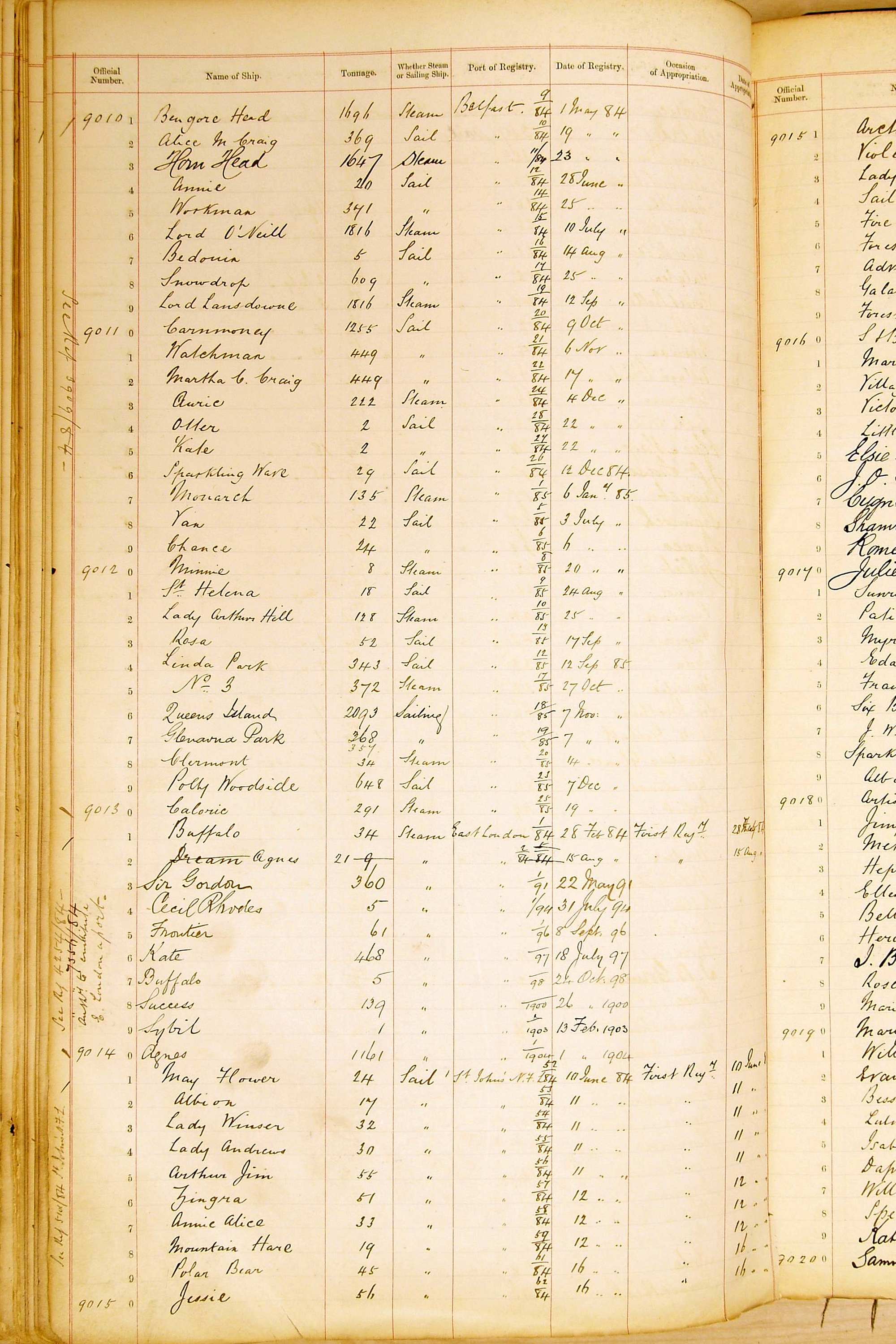 When the system of official numbers began on 16 April 1855, the British Ports of Registry were each allocated batches of official numbers. For official numbers up to 22200 you can see this allocation as a pencil note at the top of the page where the allocation began. A summary of the first allocation is shown here: Initial allocation of official numbers
