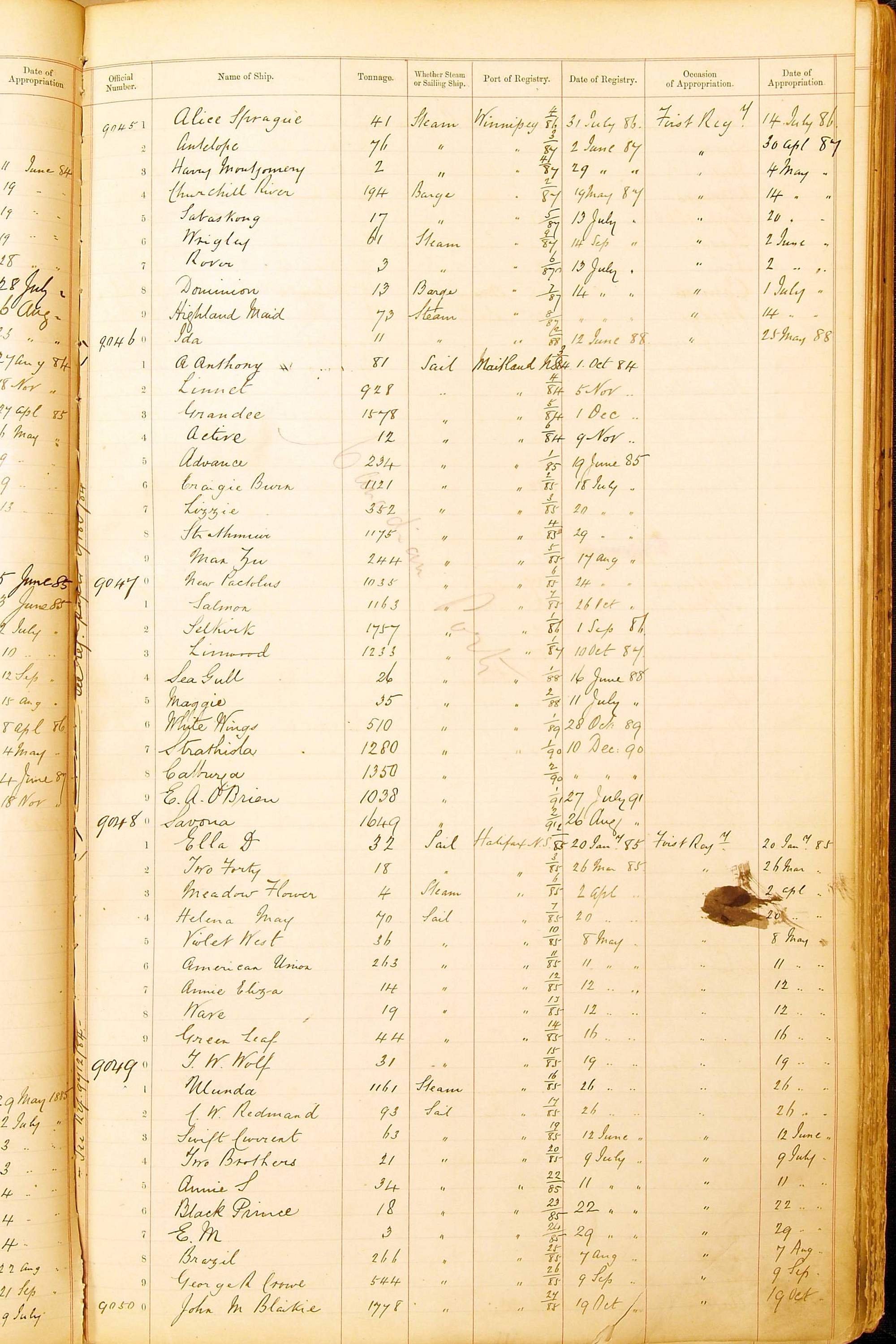 Bear in mind that the ships names in the Appropriation Books are not the definitive name or spelling of the name, even though these are the central records for the whole system. As you can see, the entries are hand-written and derived from hand-written returns made by the various ports, themselves based on the hand-written shipping registers, based on what the port officials thought the person registering the ship was saying or had hand-written down.