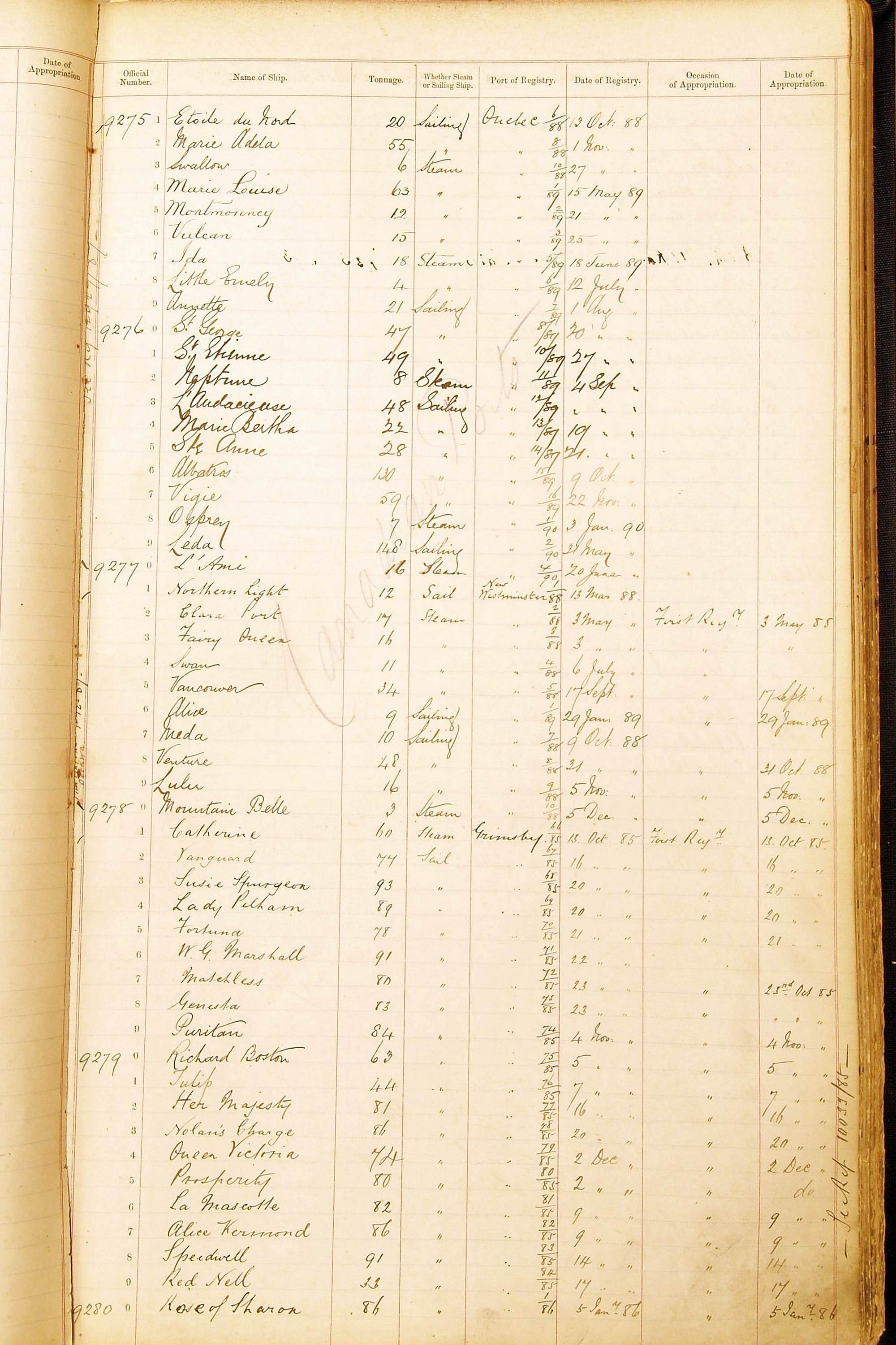 Bear in mind that the ships names in the Appropriation Books are not the definitive name or spelling of the name, even though these are the central records for the whole system. As you can see, the entries are hand-written and derived from hand-written returns made by the various ports, themselves based on the hand-written shipping registers, based on what the port officials thought the person registering the ship was saying or had hand-written down.