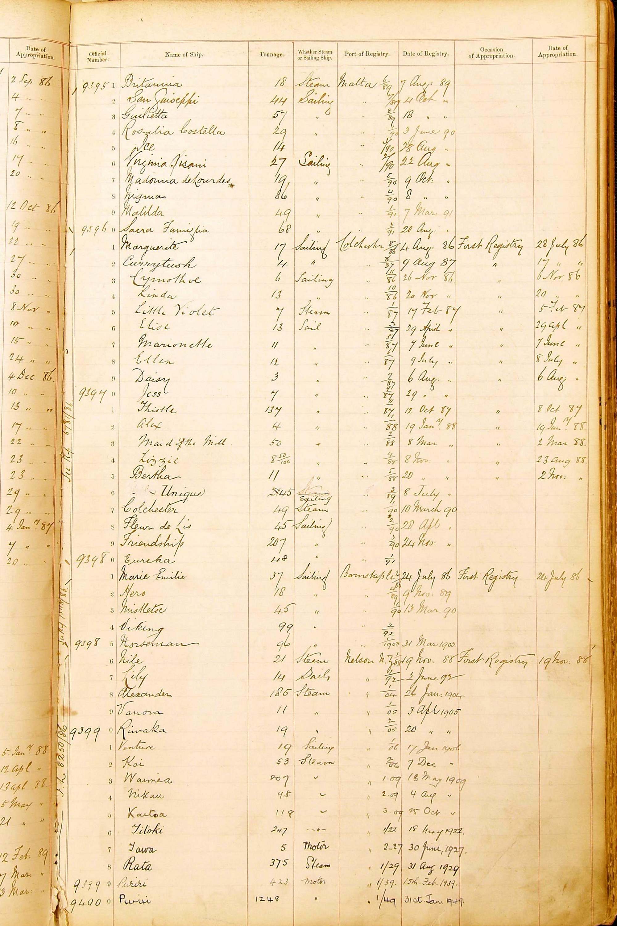 The images were made by CLIP from the original volumes held at the Registry of Shipping and Seamen in Cardiff and we would like to thank the staff for their helpfulness in providing us with access to the volumes.