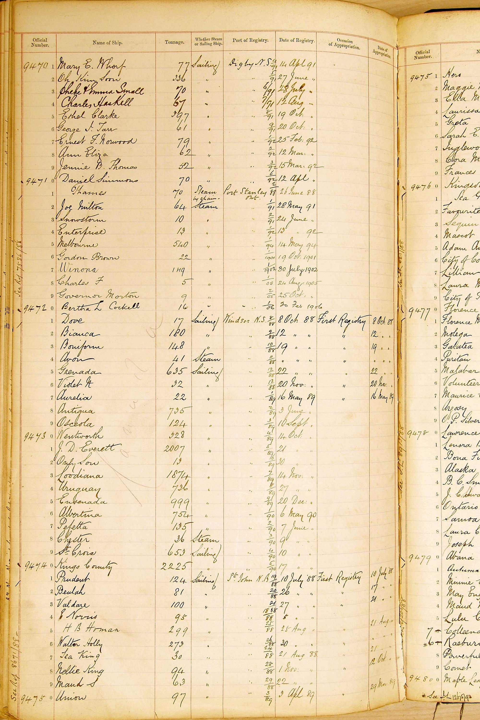 The ship names recorded are those that the ships carried at the time that their official numbers were allocated - changes are sometimes noted, but the best source for changes of name are the shipping registers for the port, or alternatively the Mercantile Navy List.