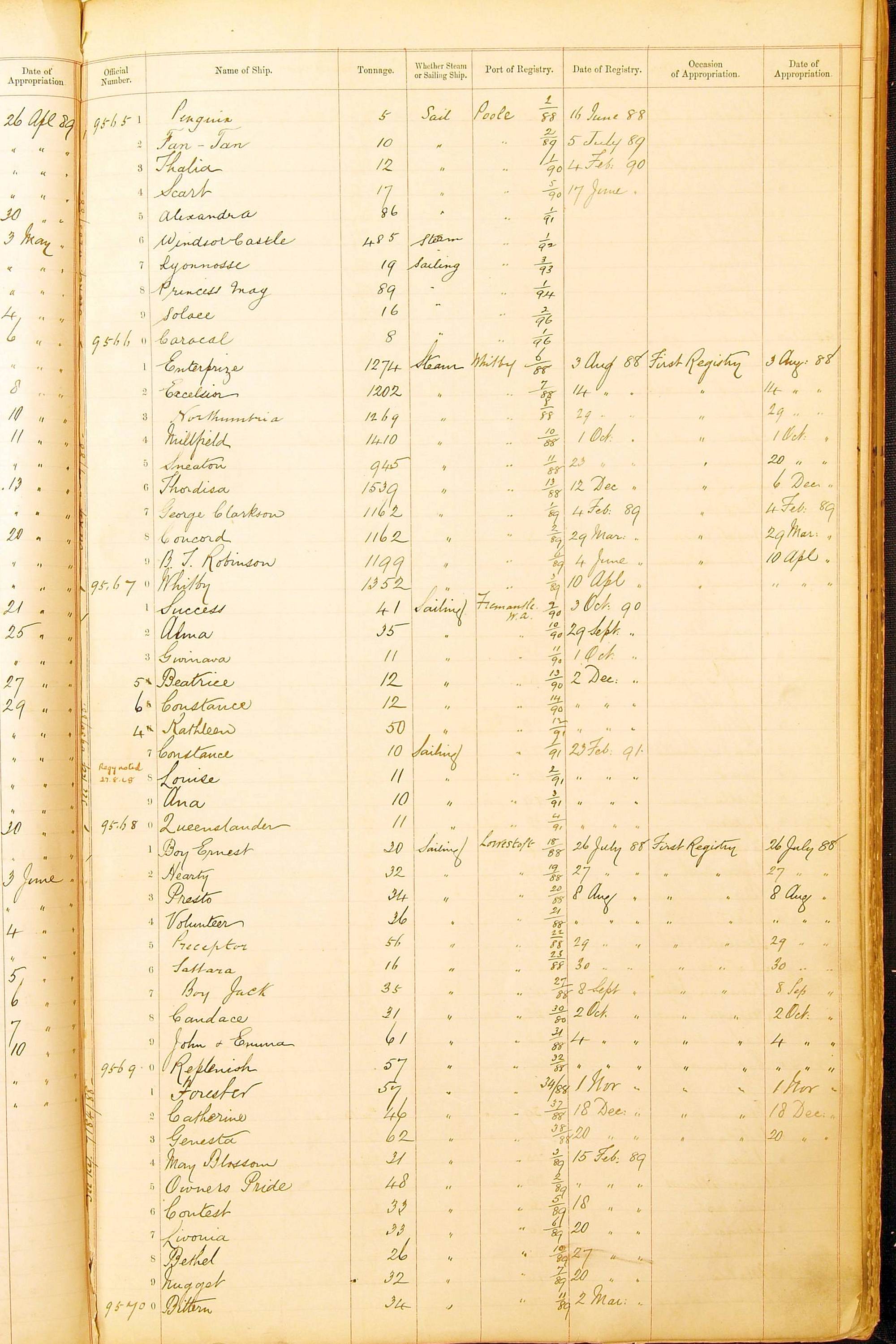 Bear in mind that the ships names in the Appropriation Books are not the definitive name or spelling of the name, even though these are the central records for the whole system. As you can see, the entries are hand-written and derived from hand-written returns made by the various ports, themselves based on the hand-written shipping registers, based on what the port officials thought the person registering the ship was saying or had hand-written down.