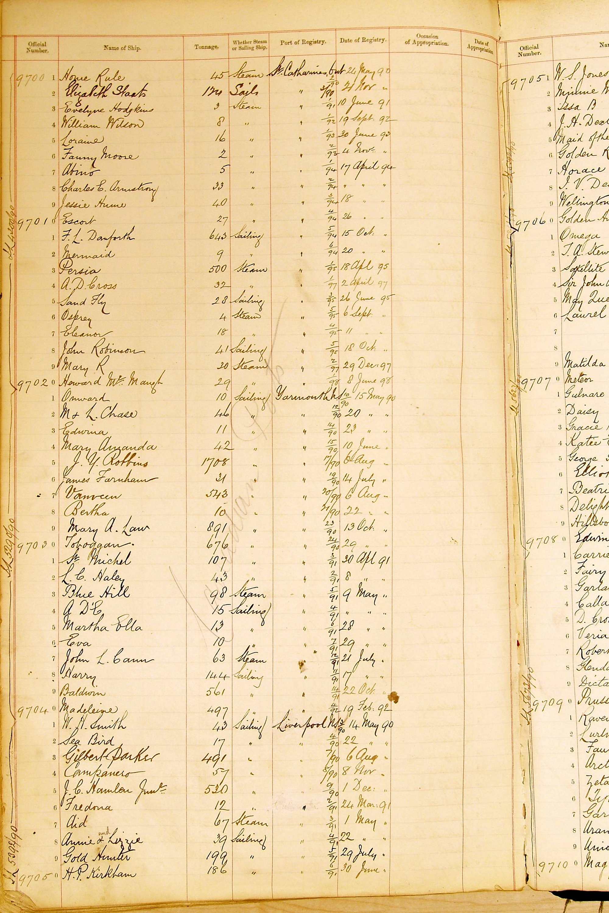 Bear in mind that the ships names in the Appropriation Books are not the definitive name or spelling of the name, even though these are the central records for the whole system. As you can see, the entries are hand-written and derived from hand-written returns made by the various ports, themselves based on the hand-written shipping registers, based on what the port officials thought the person registering the ship was saying or had hand-written down.