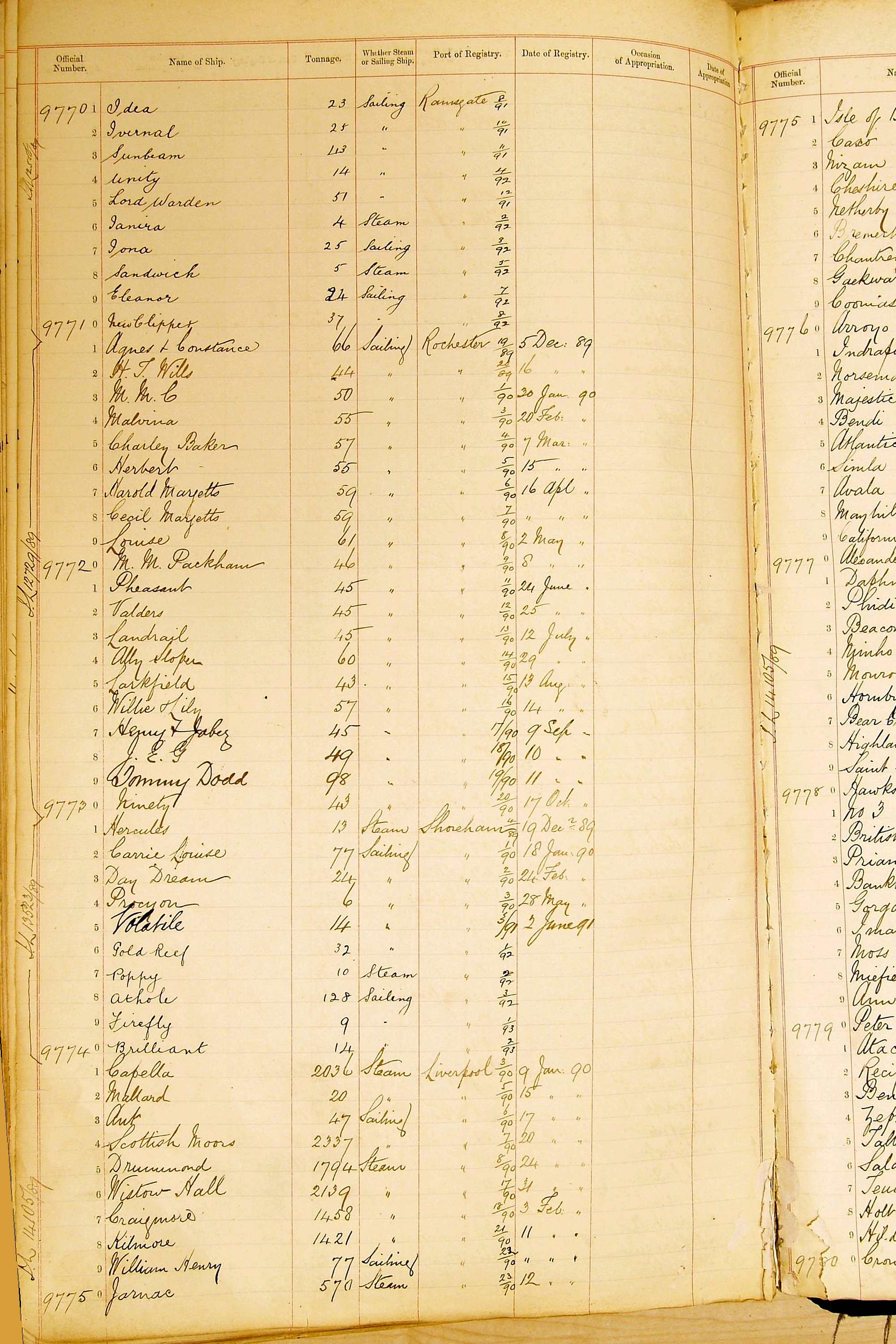 Bear in mind that the ships names in the Appropriation Books are not the definitive name or spelling of the name, even though these are the central records for the whole system. As you can see, the entries are hand-written and derived from hand-written returns made by the various ports, themselves based on the hand-written shipping registers, based on what the port officials thought the person registering the ship was saying or had hand-written down.