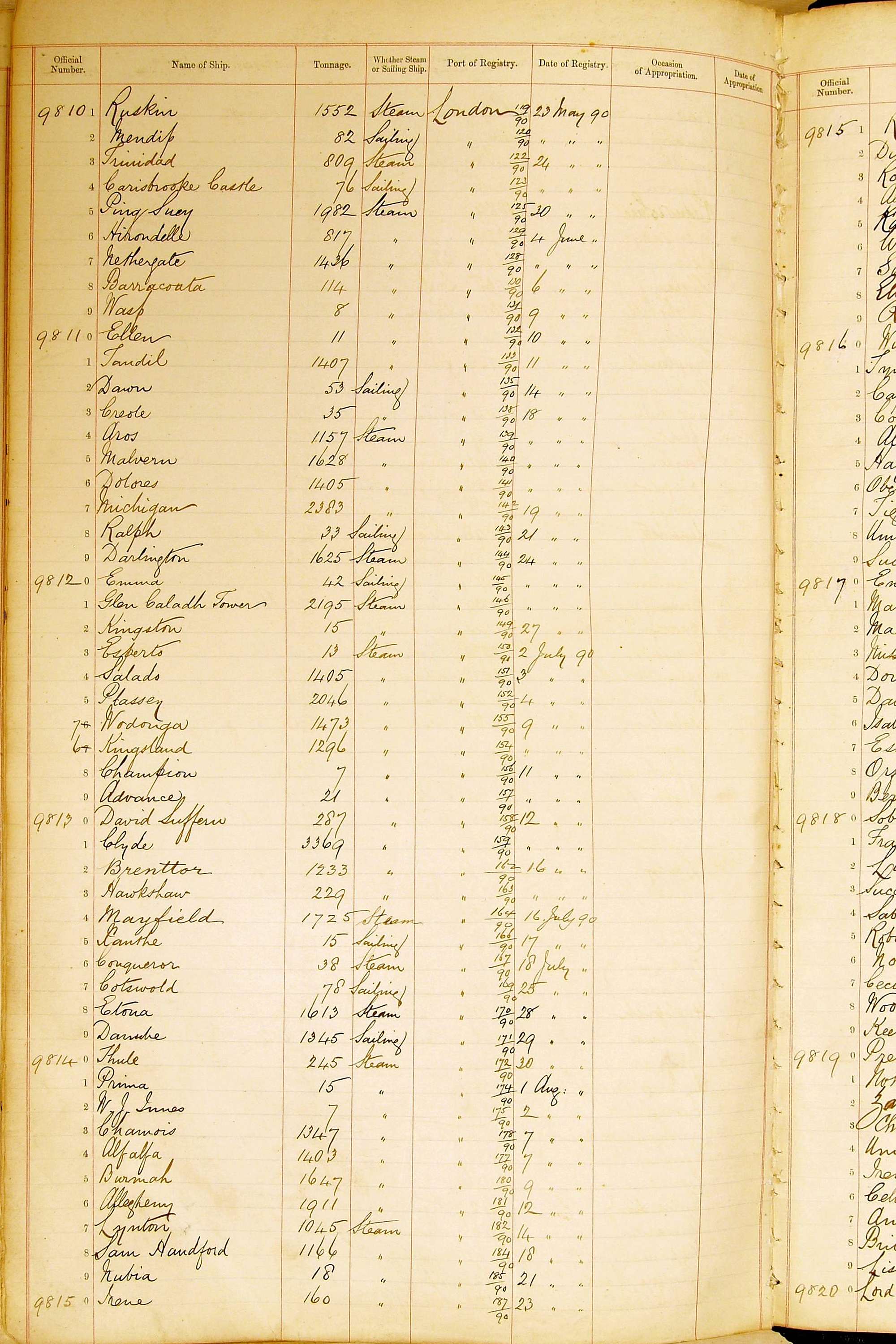 The images were made by CLIP from the original volumes held at the Registry of Shipping and Seamen in Cardiff and we would like to thank the staff for their helpfulness in providing us with access to the volumes.
