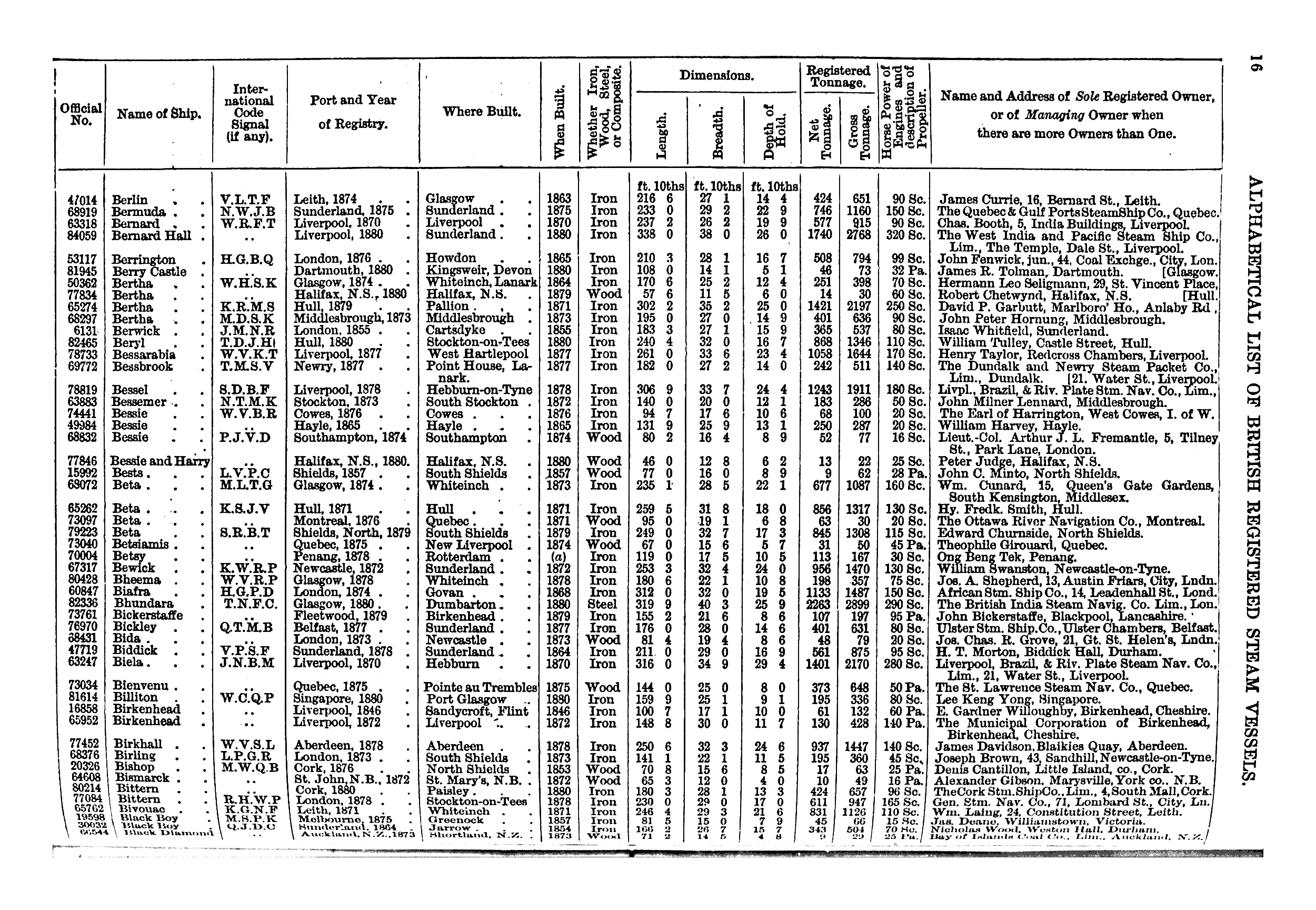 Mercantile Navy List, 1881, page 16
