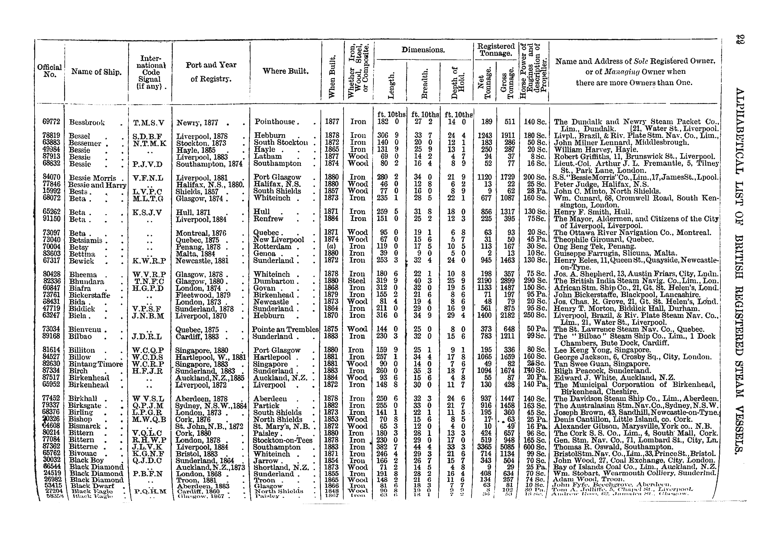 Mercantile Navy List, 1886, page 22