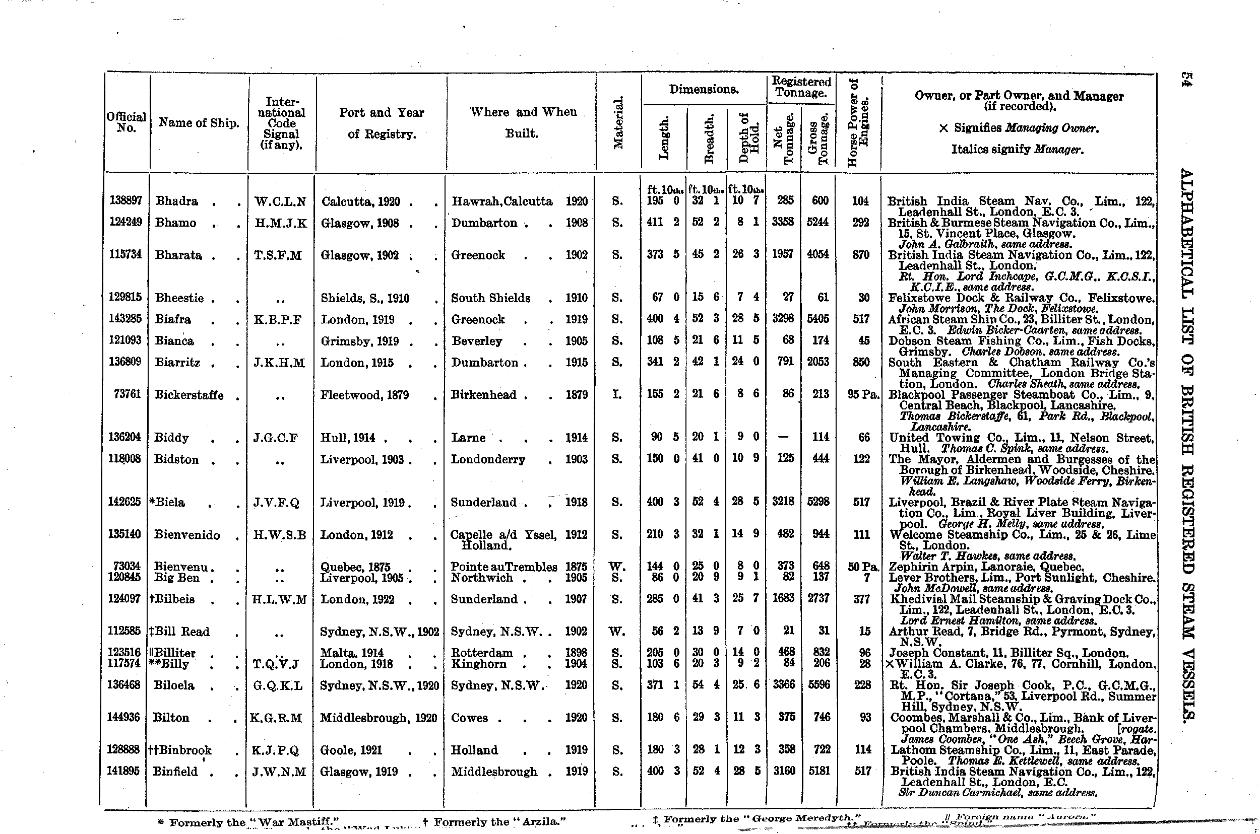 Mercantile Navy List, 1923, page 54