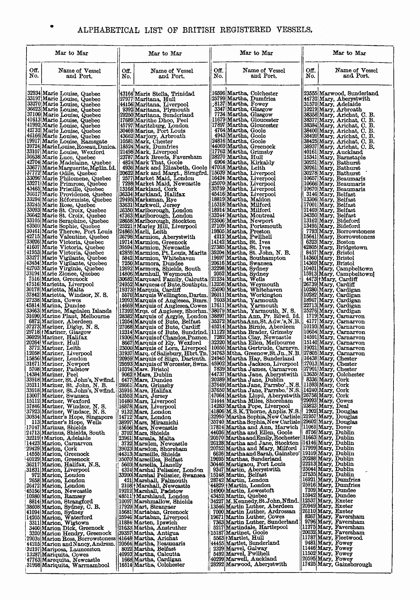For a list of the abbreviations used in MNL for sailing vessels, see the first page of the sail section of each year of MNL. For more details and links, see our page, here: Types of sailing ships
