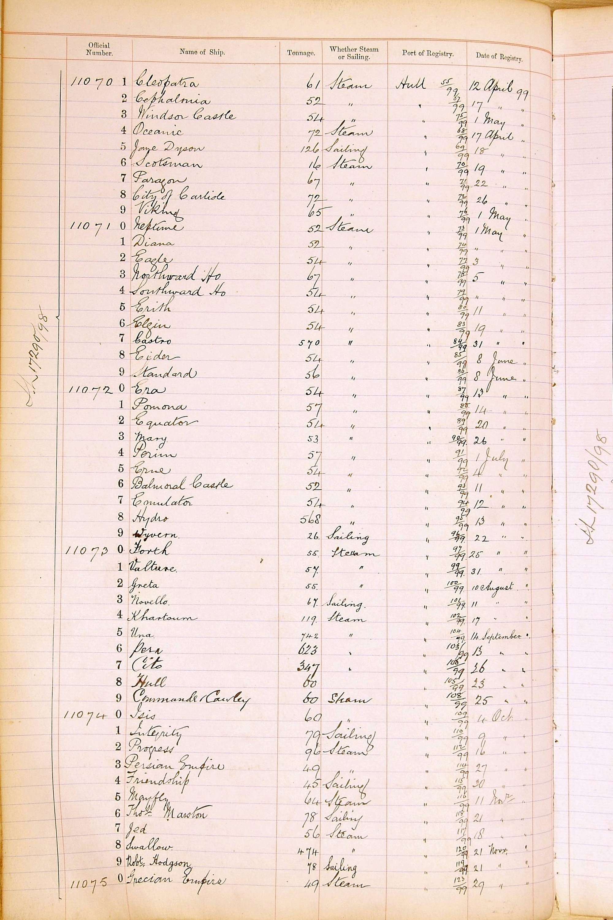 The ship names recorded are those that the ships carried at the time that their official numbers were allocated - changes are sometimes noted, but the best source for changes of name are the shipping registers for the port, or alternatively the Mercantile Navy List.