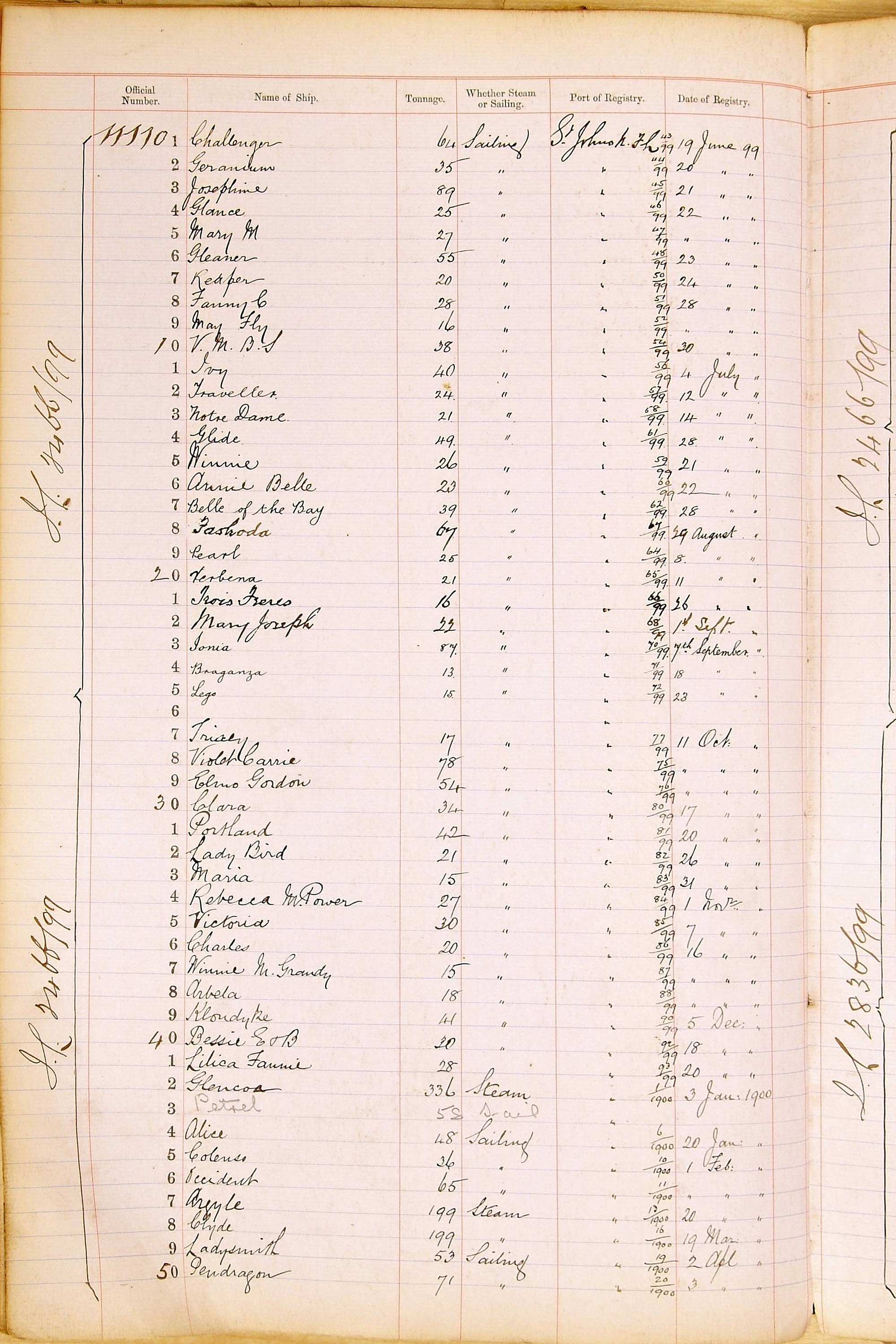 When the system of official numbers began on 16 April 1855, the British Ports of Registry were each allocated batches of official numbers. For official numbers up to 22200 you can see this allocation as a pencil note at the top of the page where the allocation began. A summary of the first allocation is shown here: Initial allocation of official numbers