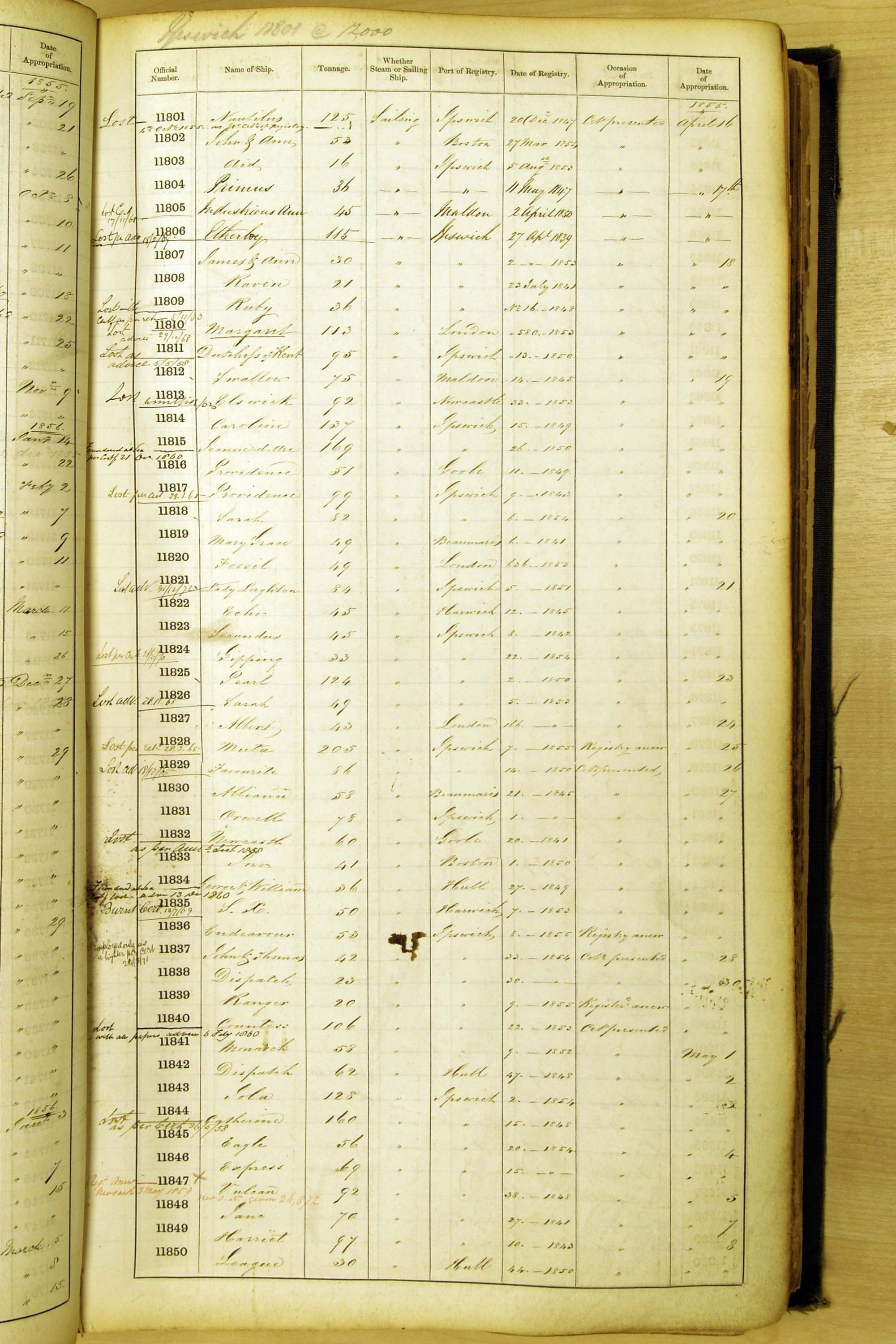 Bear in mind that the ships names in the Appropriation Books are not the definitive name or spelling of the name, even though these are the central records for the whole system. As you can see, the entries are hand-written and derived from hand-written returns made by the various ports, themselves based on the hand-written shipping registers, based on what the port officials thought the person registering the ship was saying or had hand-written down.