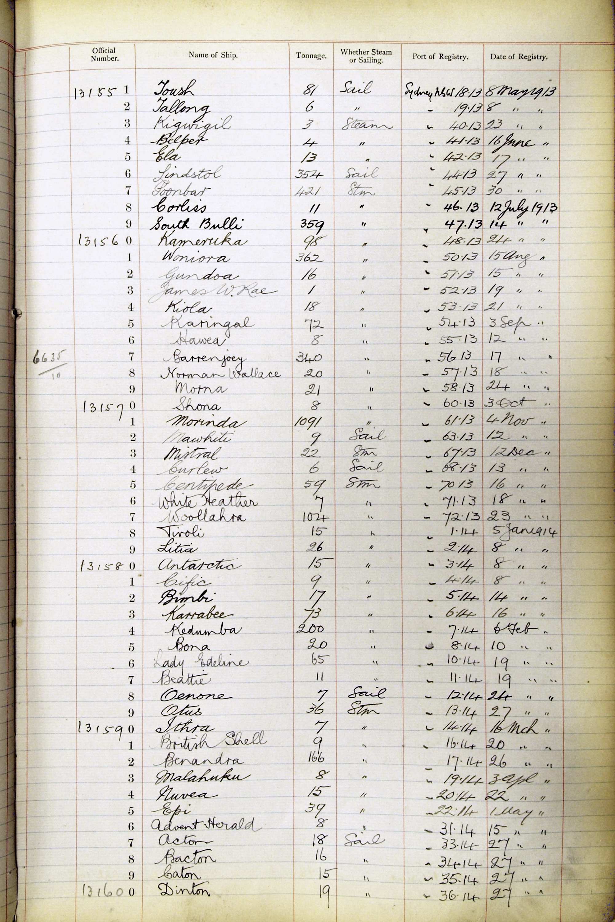 The ship names recorded are those that the ships carried at the time that their official numbers were allocated - changes are sometimes noted, but the best source for changes of name are the shipping registers for the port, or alternatively the Mercantile Navy List.