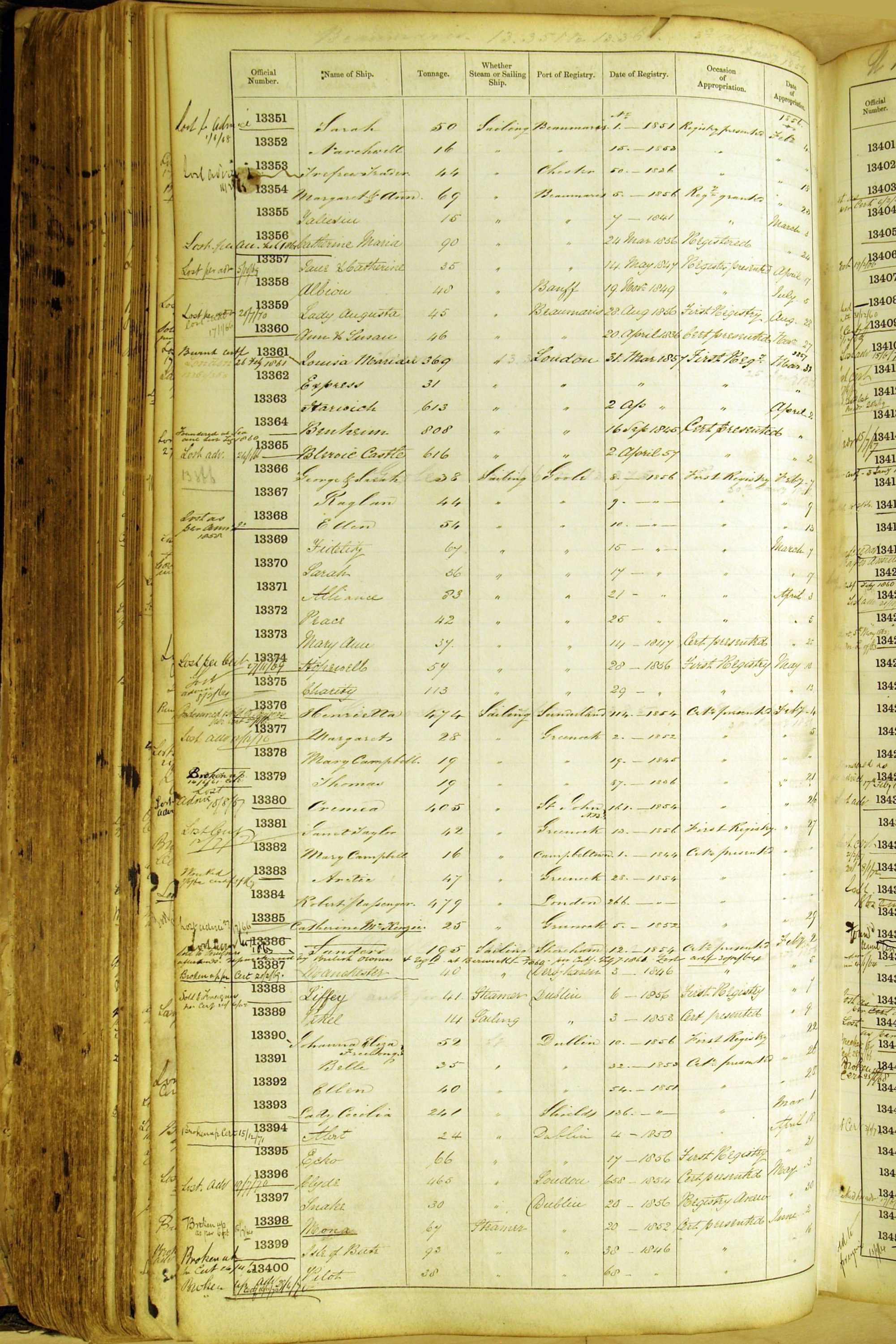 Bear in mind that the ships names in the Appropriation Books are not the definitive name or spelling of the name, even though these are the central records for the whole system. As you can see, the entries are hand-written and derived from hand-written returns made by the various ports, themselves based on the hand-written shipping registers, based on what the port officials thought the person registering the ship was saying or had hand-written down.