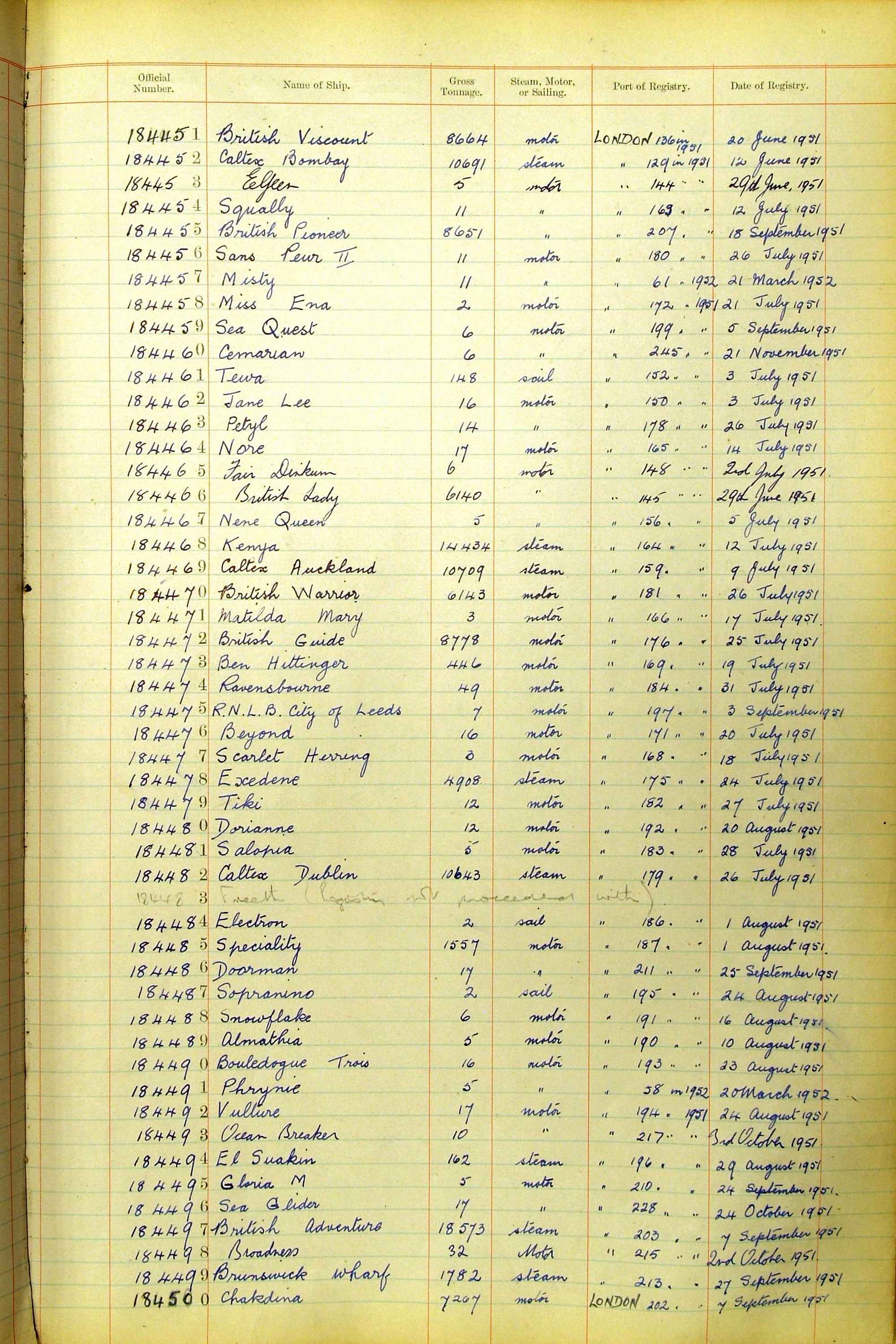 The ship names recorded are those that the ships carried at the time that their official numbers were allocated - changes are sometimes noted, but the best source for changes of name are the shipping registers for the port, or alternatively the Mercantile Navy List.