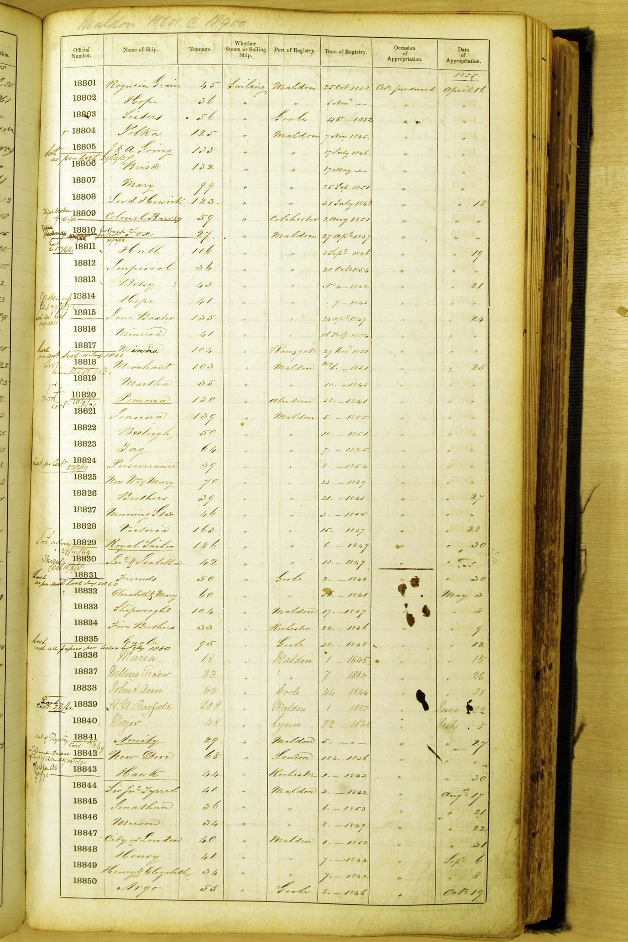 Bear in mind that the ships names in the Appropriation Books are not the definitive name or spelling of the name, even though these are the central records for the whole system. As you can see, the entries are hand-written and derived from hand-written returns made by the various ports, themselves based on the hand-written shipping registers, based on what the port officials thought the person registering the ship was saying or had hand-written down.