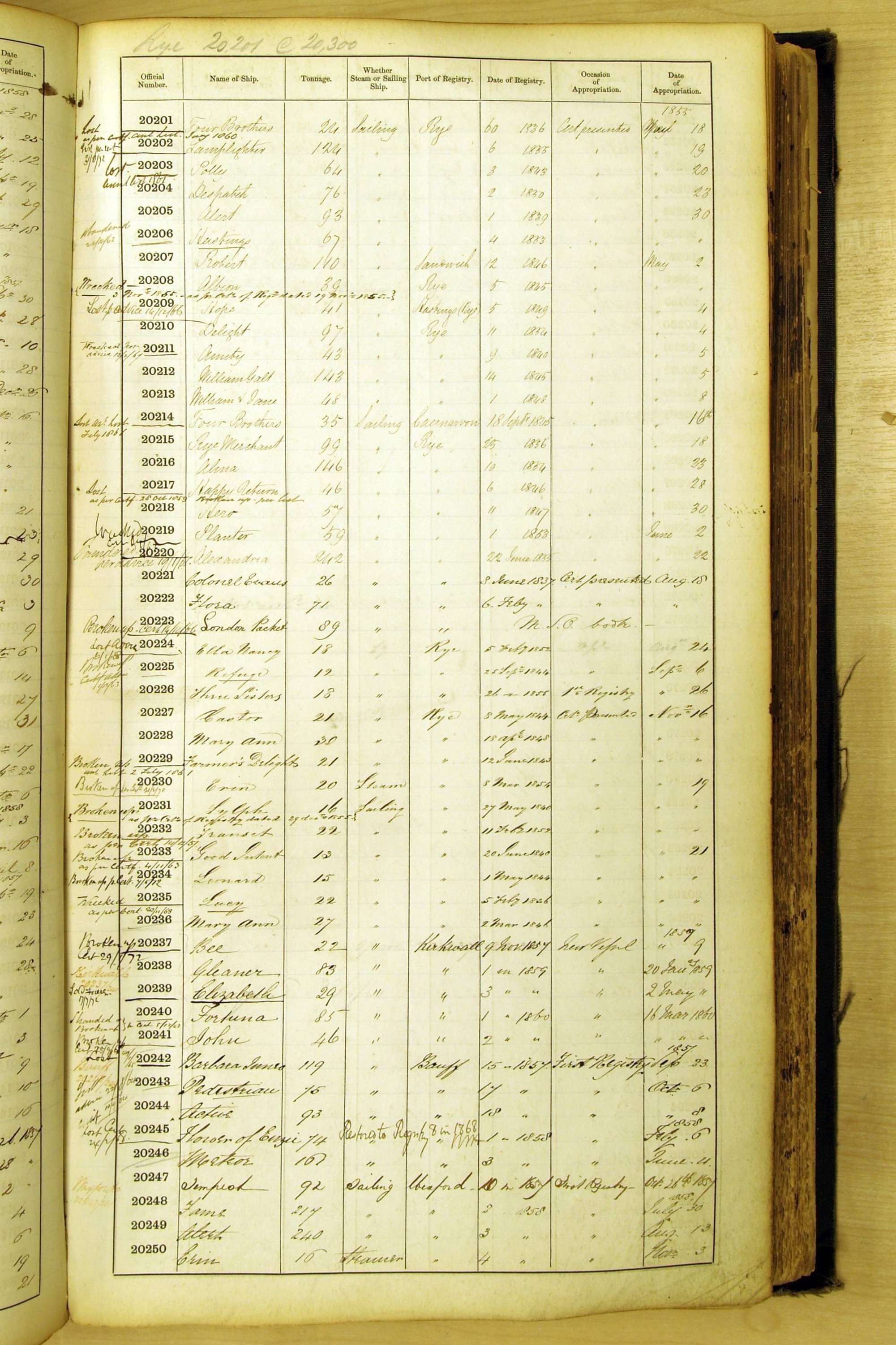 Bear in mind that the ships names in the Appropriation Books are not the definitive name or spelling of the name, even though these are the central records for the whole system. As you can see, the entries are hand-written and derived from hand-written returns made by the various ports, themselves based on the hand-written shipping registers, based on what the port officials thought the person registering the ship was saying or had hand-written down.