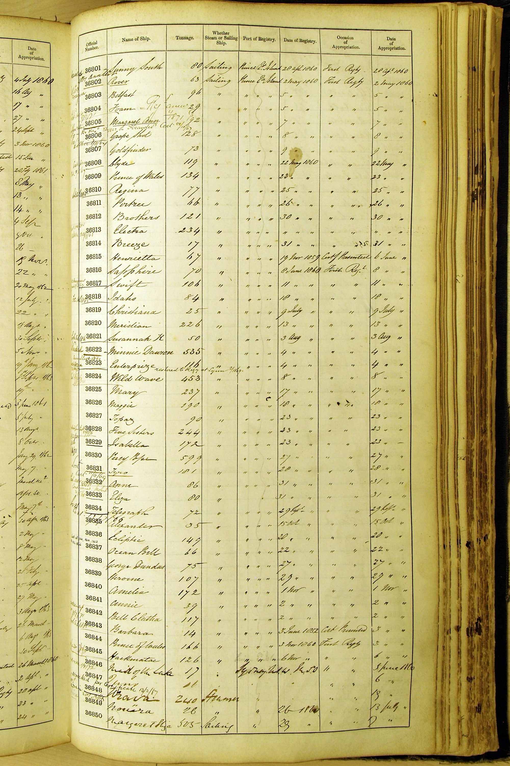 Bear in mind that the ships names in the Appropriation Books are not the definitive name or spelling of the name, even though these are the central records for the whole system. As you can see, the entries are hand-written and derived from hand-written returns made by the various ports, themselves based on the hand-written shipping registers, based on what the port officials thought the person registering the ship was saying or had hand-written down.