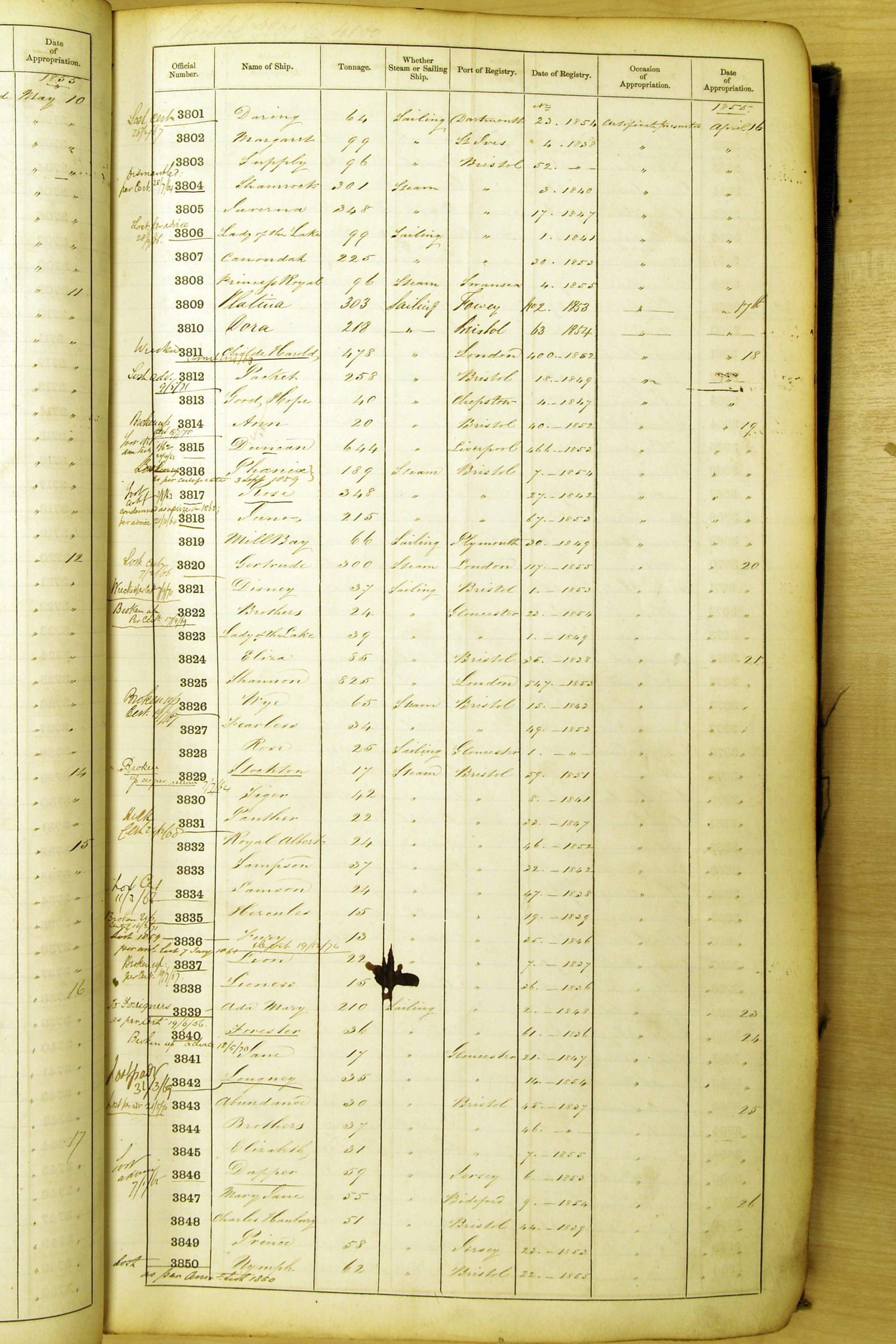 Bear in mind that the ships names in the Appropriation Books are not the definitive name or spelling of the name, even though these are the central records for the whole system. As you can see, the entries are hand-written and derived from hand-written returns made by the various ports, themselves based on the hand-written shipping registers, based on what the port officials thought the person registering the ship was saying or had hand-written down.