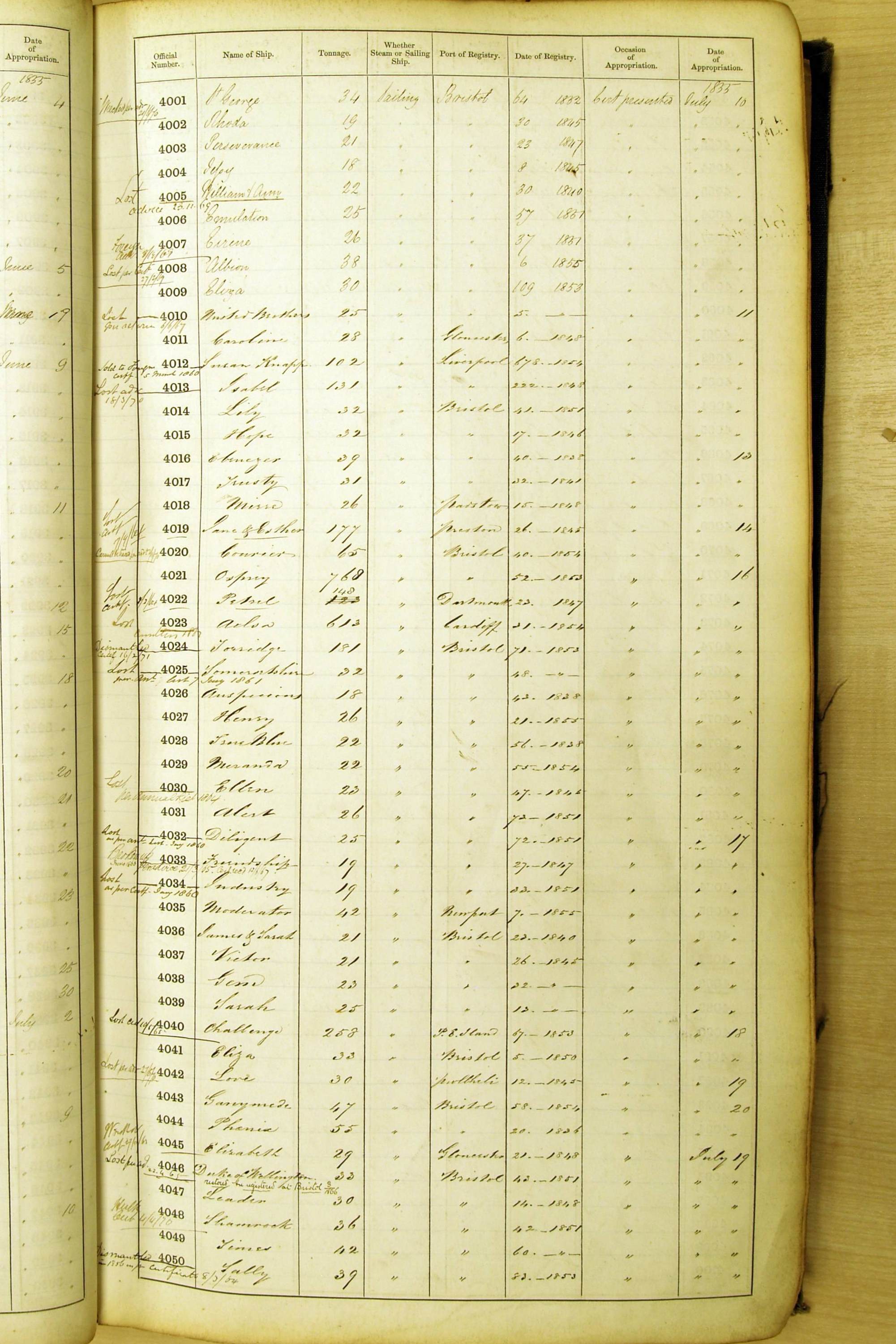Bear in mind that the ships names in the Appropriation Books are not the definitive name or spelling of the name, even though these are the central records for the whole system. As you can see, the entries are hand-written and derived from hand-written returns made by the various ports, themselves based on the hand-written shipping registers, based on what the port officials thought the person registering the ship was saying or had hand-written down.