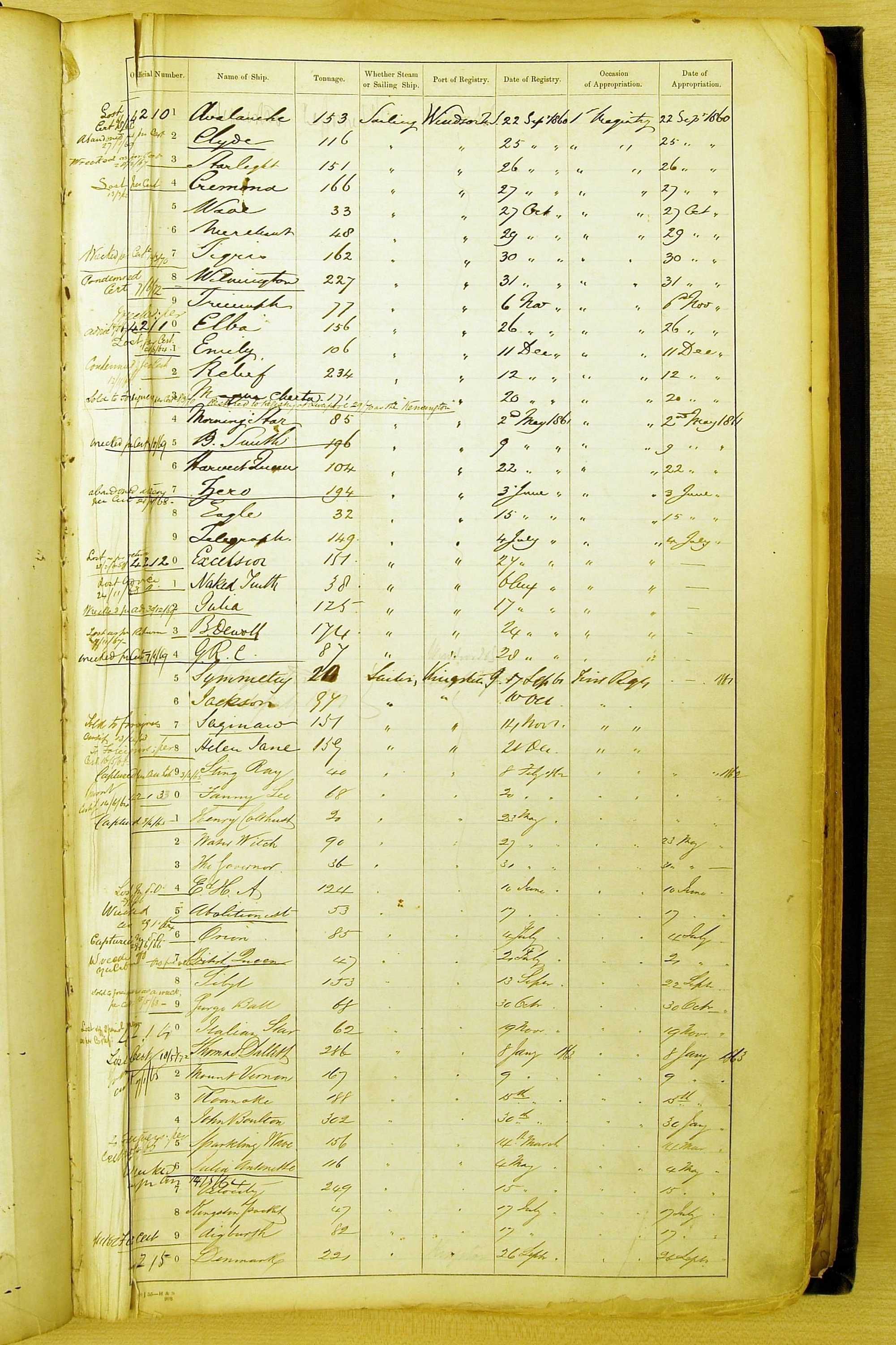 Bear in mind that the ships names in the Appropriation Books are not the definitive name or spelling of the name, even though these are the central records for the whole system. As you can see, the entries are hand-written and derived from hand-written returns made by the various ports, themselves based on the hand-written shipping registers, based on what the port officials thought the person registering the ship was saying or had hand-written down.
