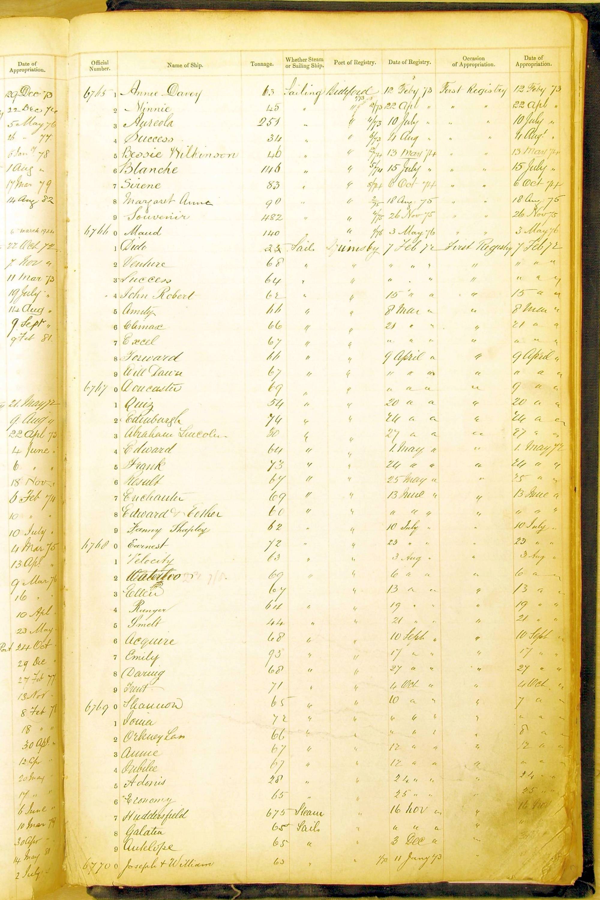 Bear in mind that the ships names in the Appropriation Books are not the definitive name or spelling of the name, even though these are the central records for the whole system. As you can see, the entries are hand-written and derived from hand-written returns made by the various ports, themselves based on the hand-written shipping registers, based on what the port officials thought the person registering the ship was saying or had hand-written down.