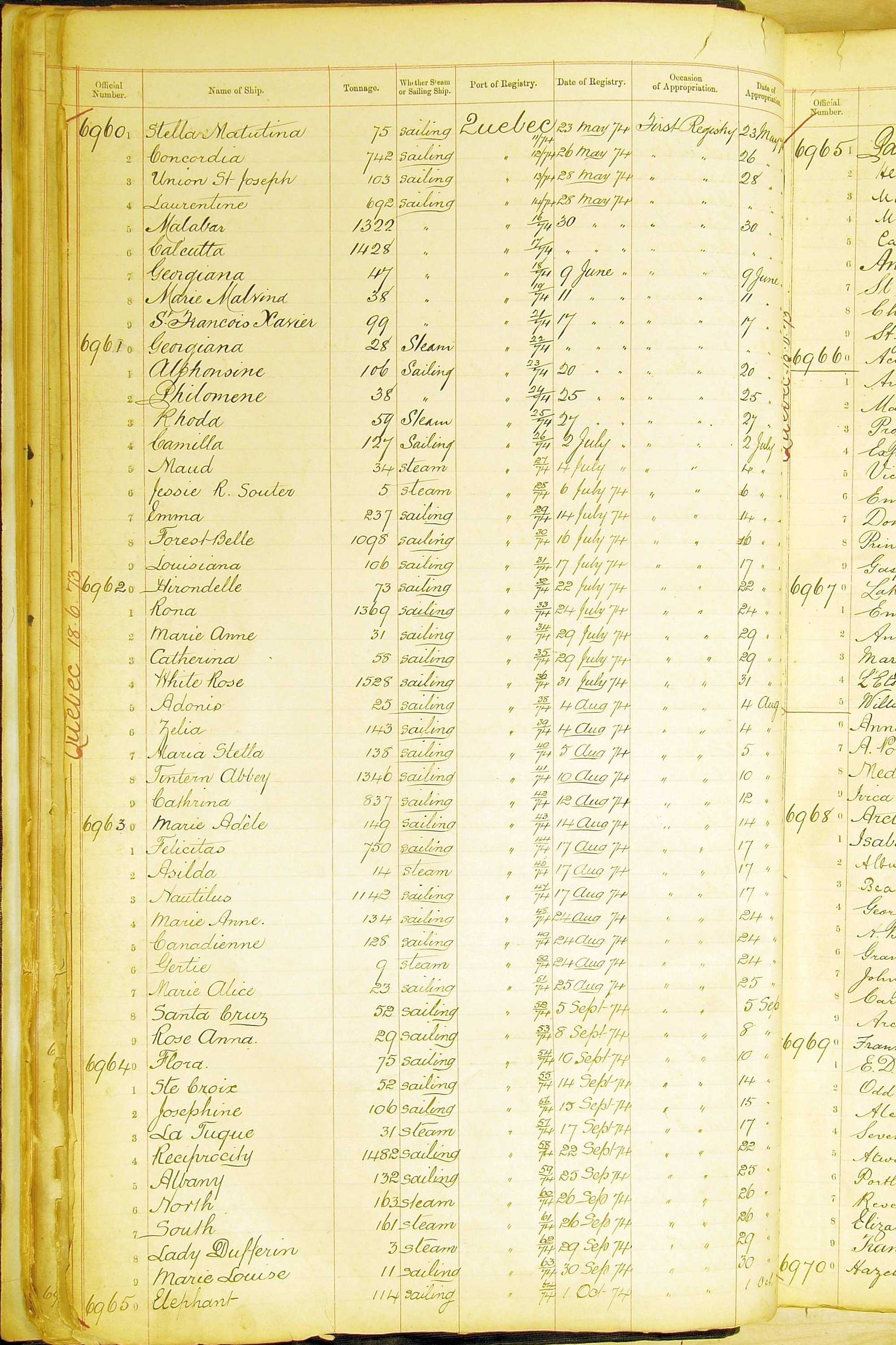 The ship names recorded are those that the ships carried at the time that their official numbers were allocated - changes are sometimes noted, but the best source for changes of name are the shipping registers for the port, or alternatively the Mercantile Navy List.