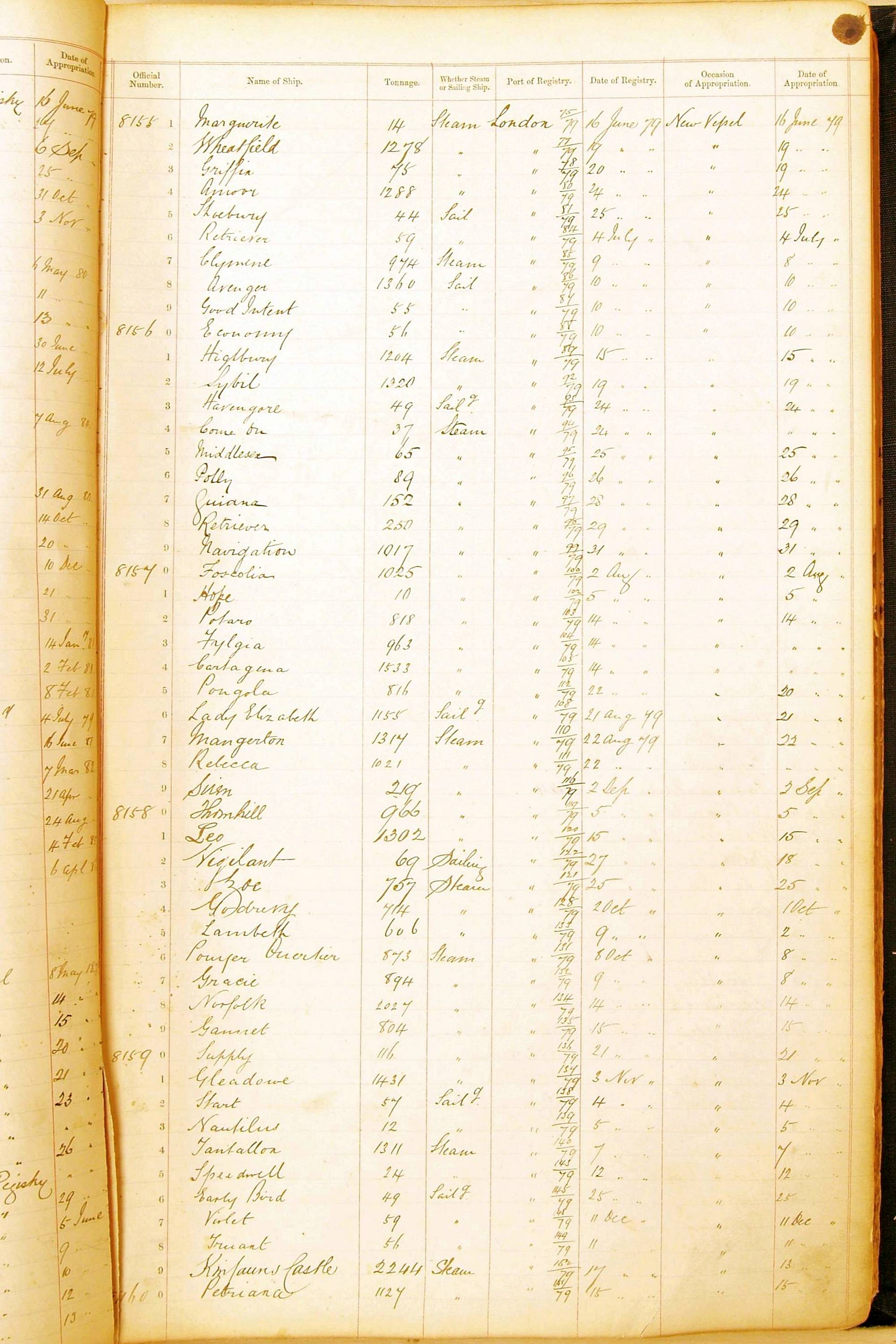 Bear in mind that the ships names in the Appropriation Books are not the definitive name or spelling of the name, even though these are the central records for the whole system. As you can see, the entries are hand-written and derived from hand-written returns made by the various ports, themselves based on the hand-written shipping registers, based on what the port officials thought the person registering the ship was saying or had hand-written down.