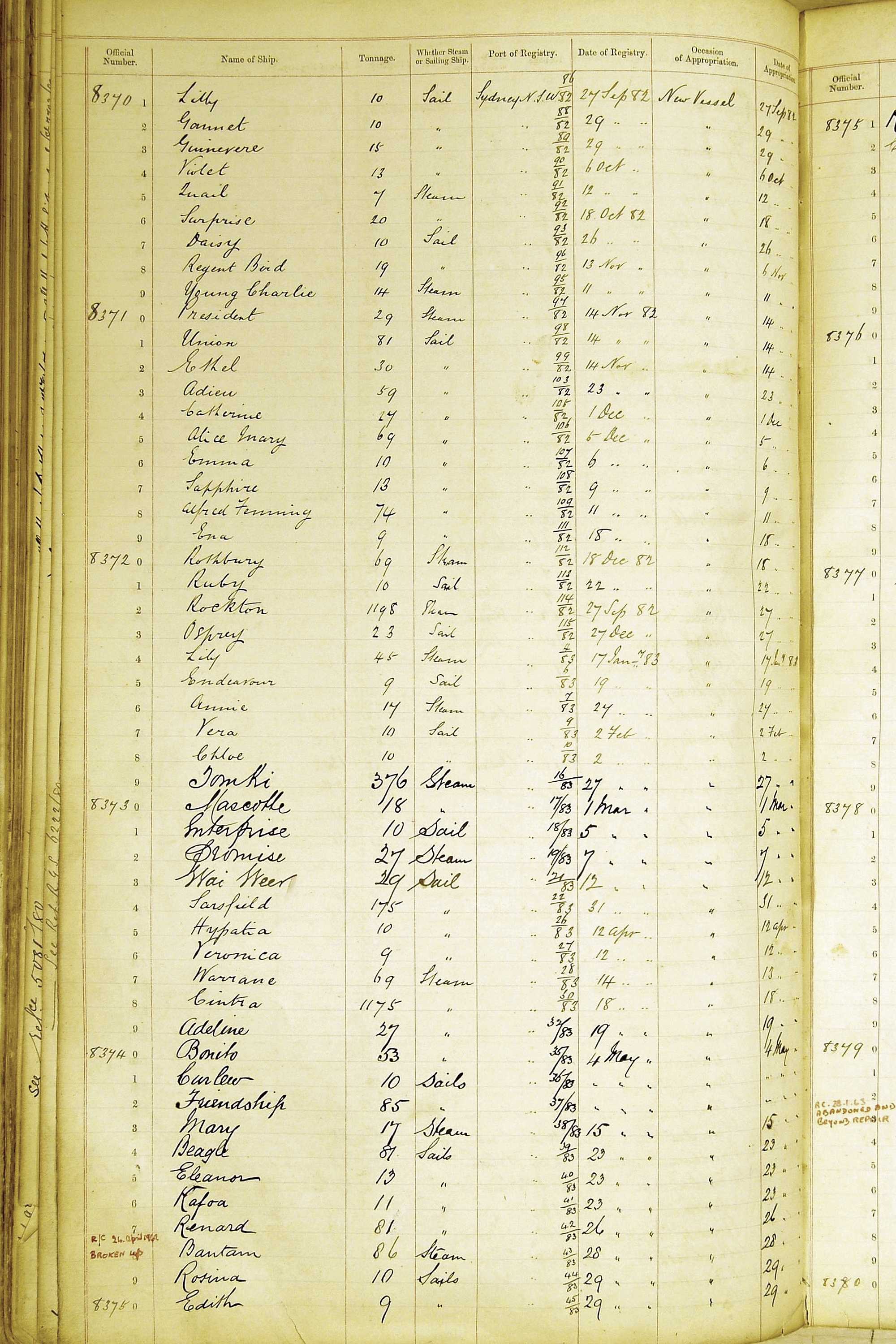 The ship names recorded are those that the ships carried at the time that their official numbers were allocated - changes are sometimes noted, but the best source for changes of name are the shipping registers for the port, or alternatively the Mercantile Navy List.