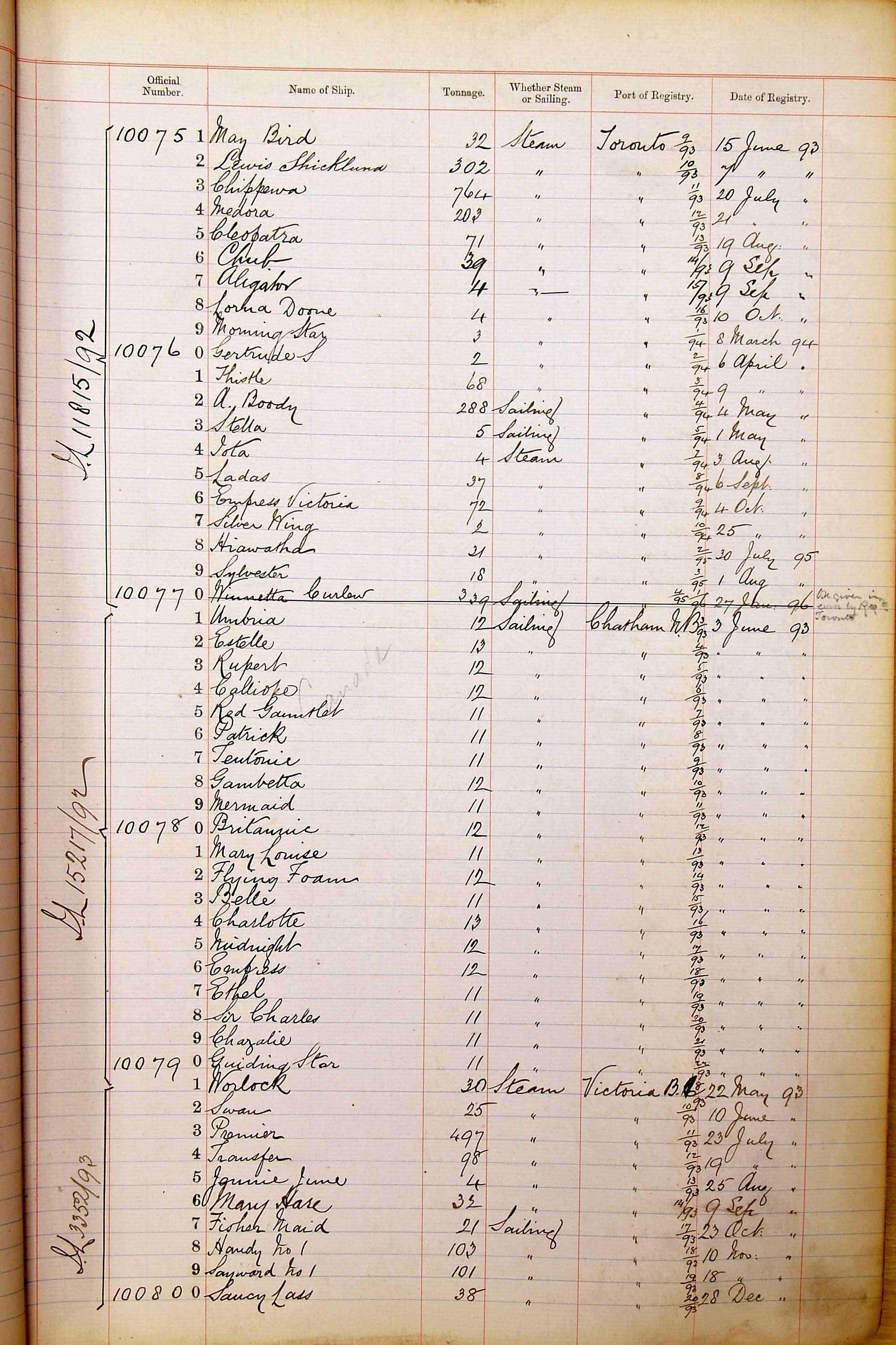 The ship names recorded are those that the ships carried at the time that their official numbers were allocated - changes are sometimes noted, but the best source for changes of name are the shipping registers for the port, or alternatively the Mercantile Navy List.