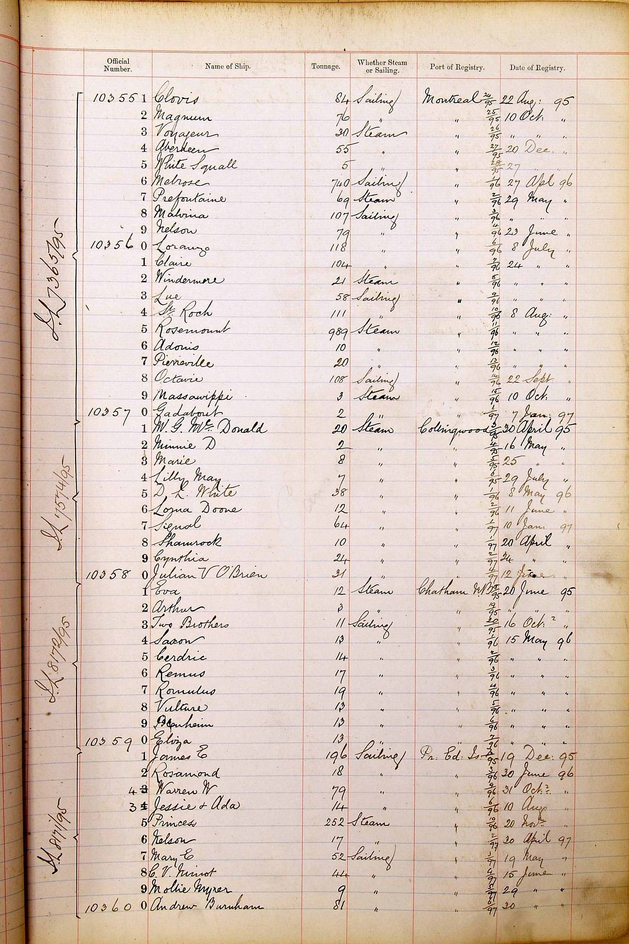 When the system of official numbers began on 16 April 1855, the British Ports of Registry were each allocated batches of official numbers. For official numbers up to 22200 you can see this allocation as a pencil note at the top of the page where the allocation began. A summary of the first allocation is shown here: Initial allocation of official numbers