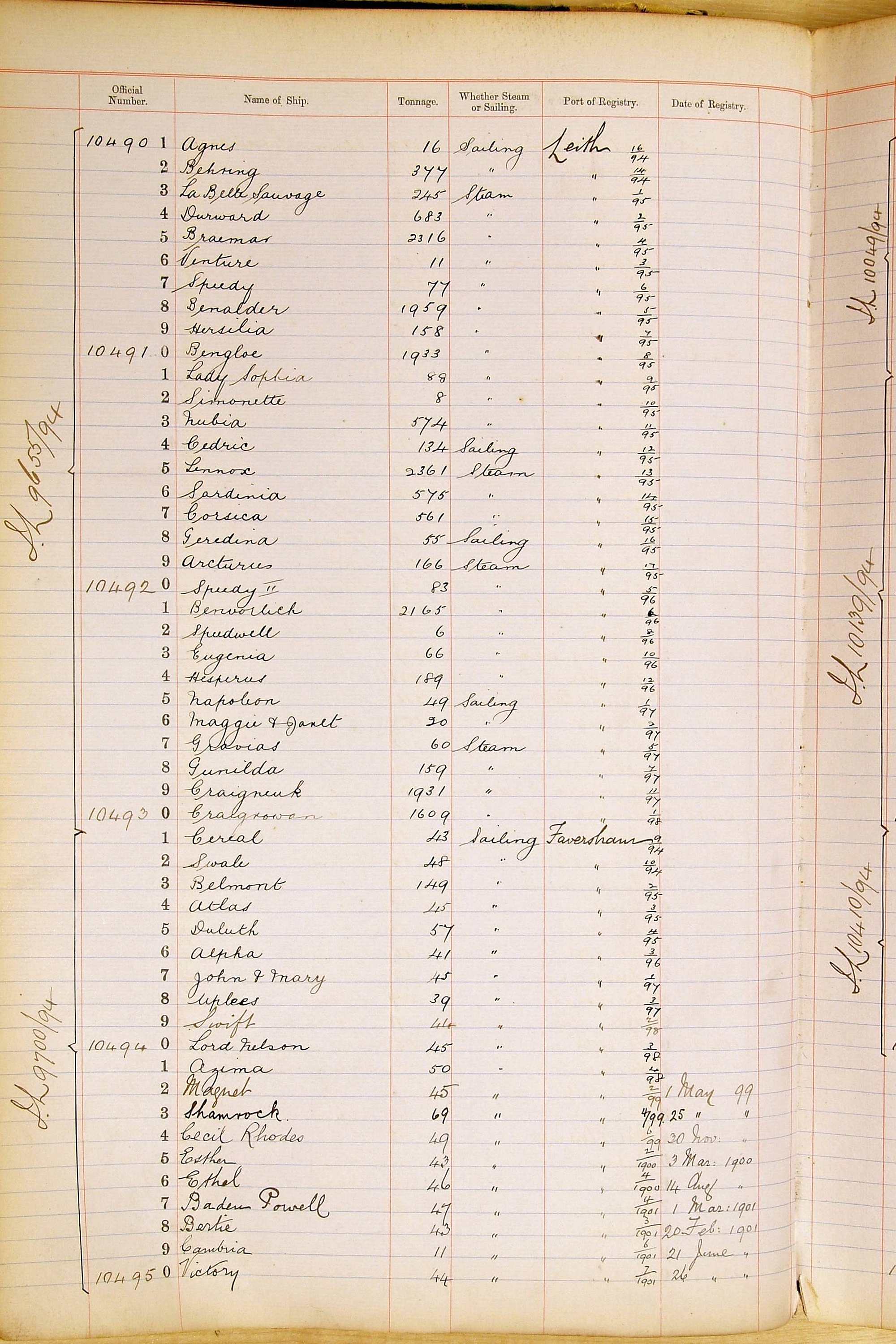 When the system of official numbers began on 16 April 1855, the British Ports of Registry were each allocated batches of official numbers. For official numbers up to 22200 you can see this allocation as a pencil note at the top of the page where the allocation began. A summary of the first allocation is shown here: Initial allocation of official numbers