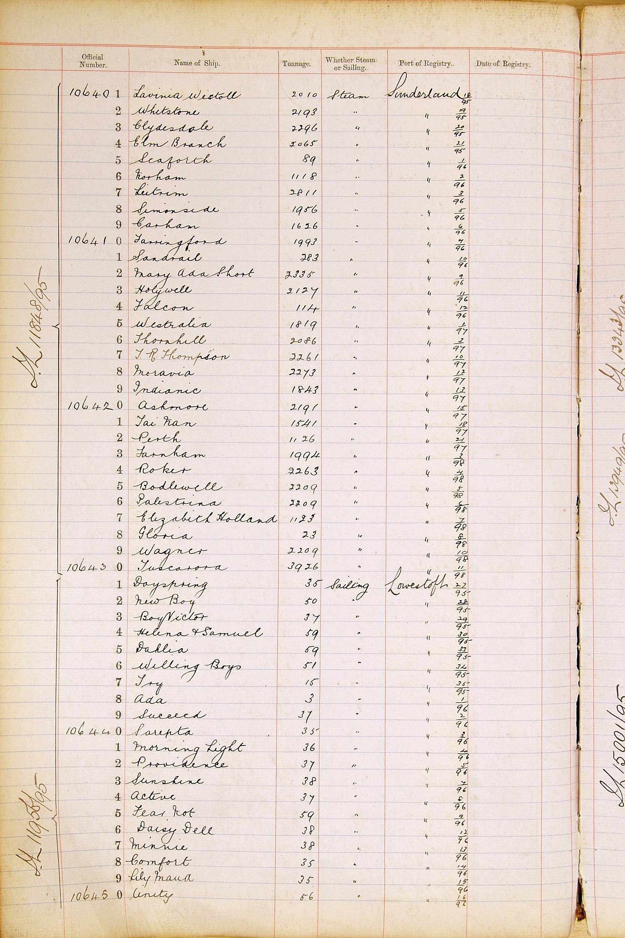 When the system of official numbers began on 16 April 1855, the British Ports of Registry were each allocated batches of official numbers. For official numbers up to 22200 you can see this allocation as a pencil note at the top of the page where the allocation began. A summary of the first allocation is shown here: Initial allocation of official numbers