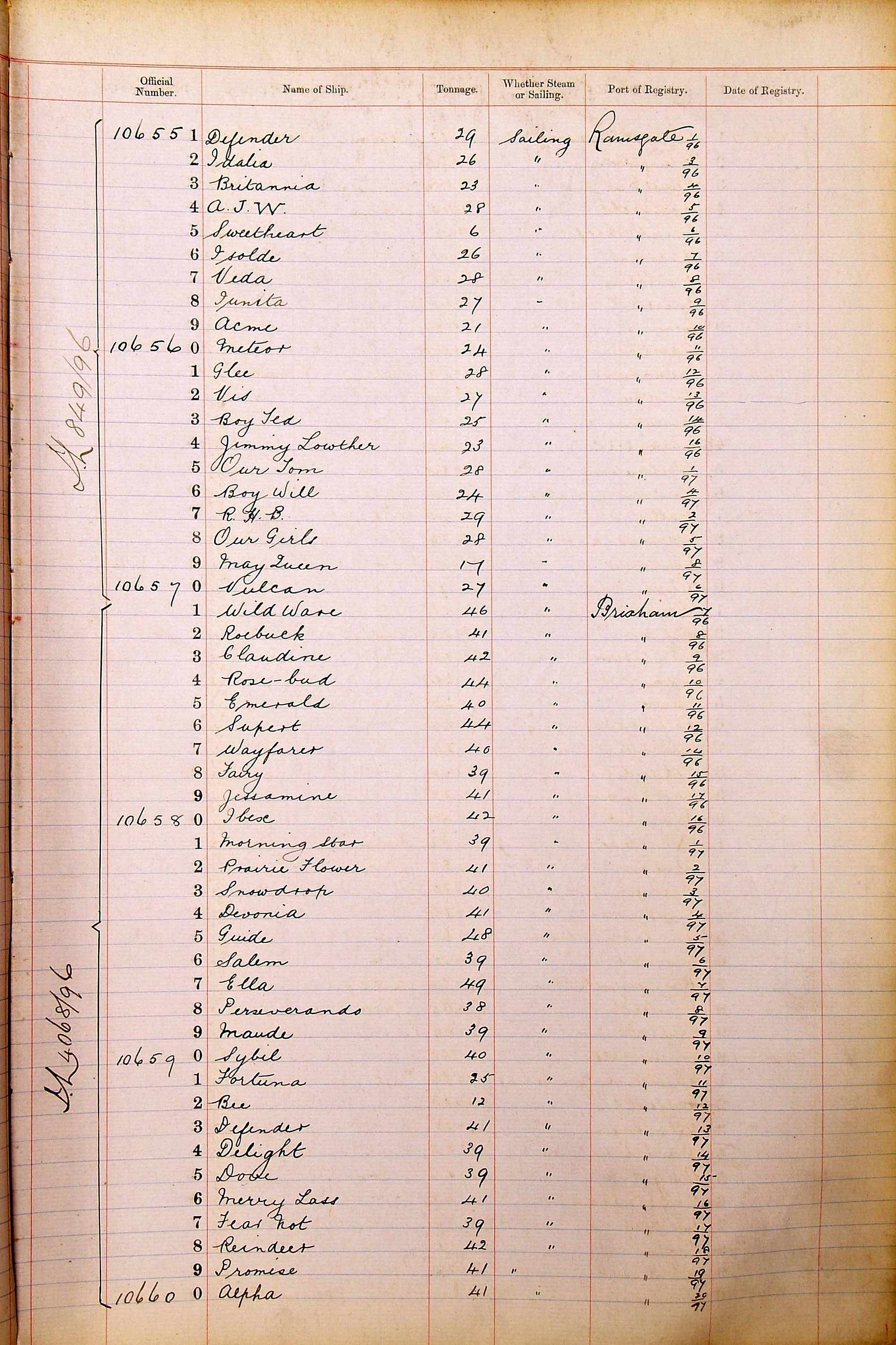 The ship names recorded are those that the ships carried at the time that their official numbers were allocated - changes are sometimes noted, but the best source for changes of name are the shipping registers for the port, or alternatively the Mercantile Navy List.