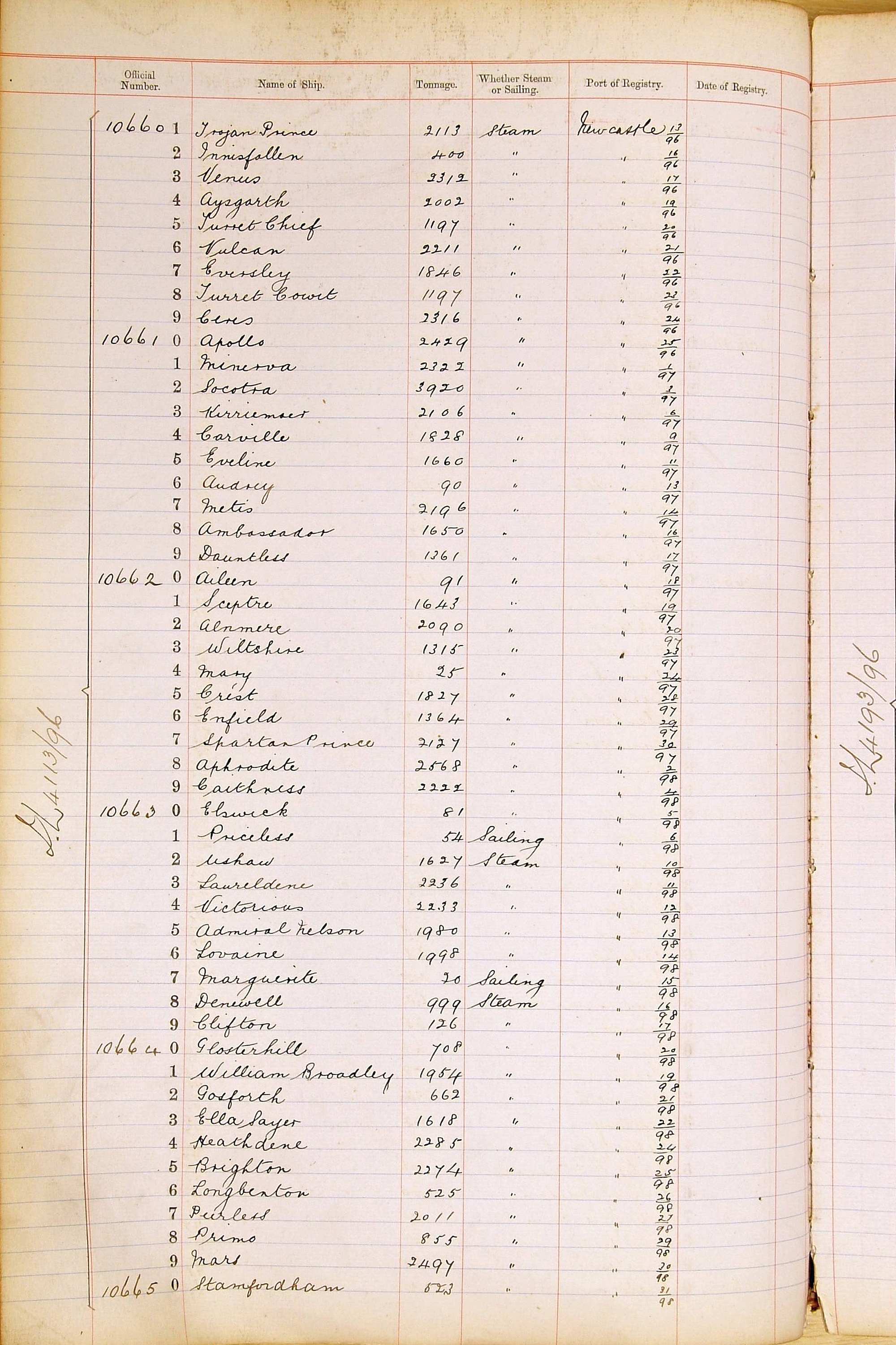 When the system of official numbers began on 16 April 1855, the British Ports of Registry were each allocated batches of official numbers. For official numbers up to 22200 you can see this allocation as a pencil note at the top of the page where the allocation began. A summary of the first allocation is shown here: Initial allocation of official numbers
