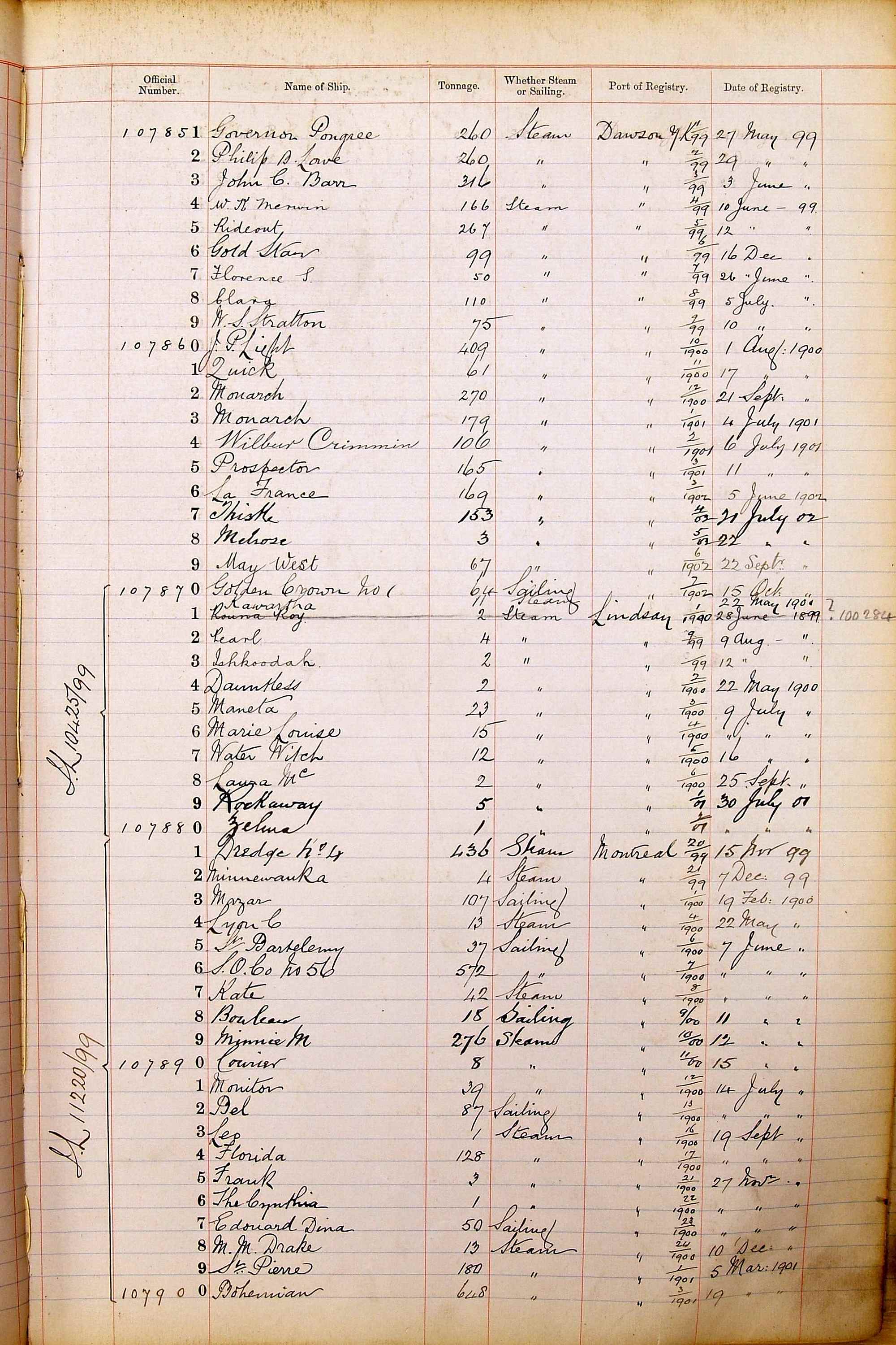 The ship names recorded are those that the ships carried at the time that their official numbers were allocated - changes are sometimes noted, but the best source for changes of name are the shipping registers for the port, or alternatively the Mercantile Navy List.