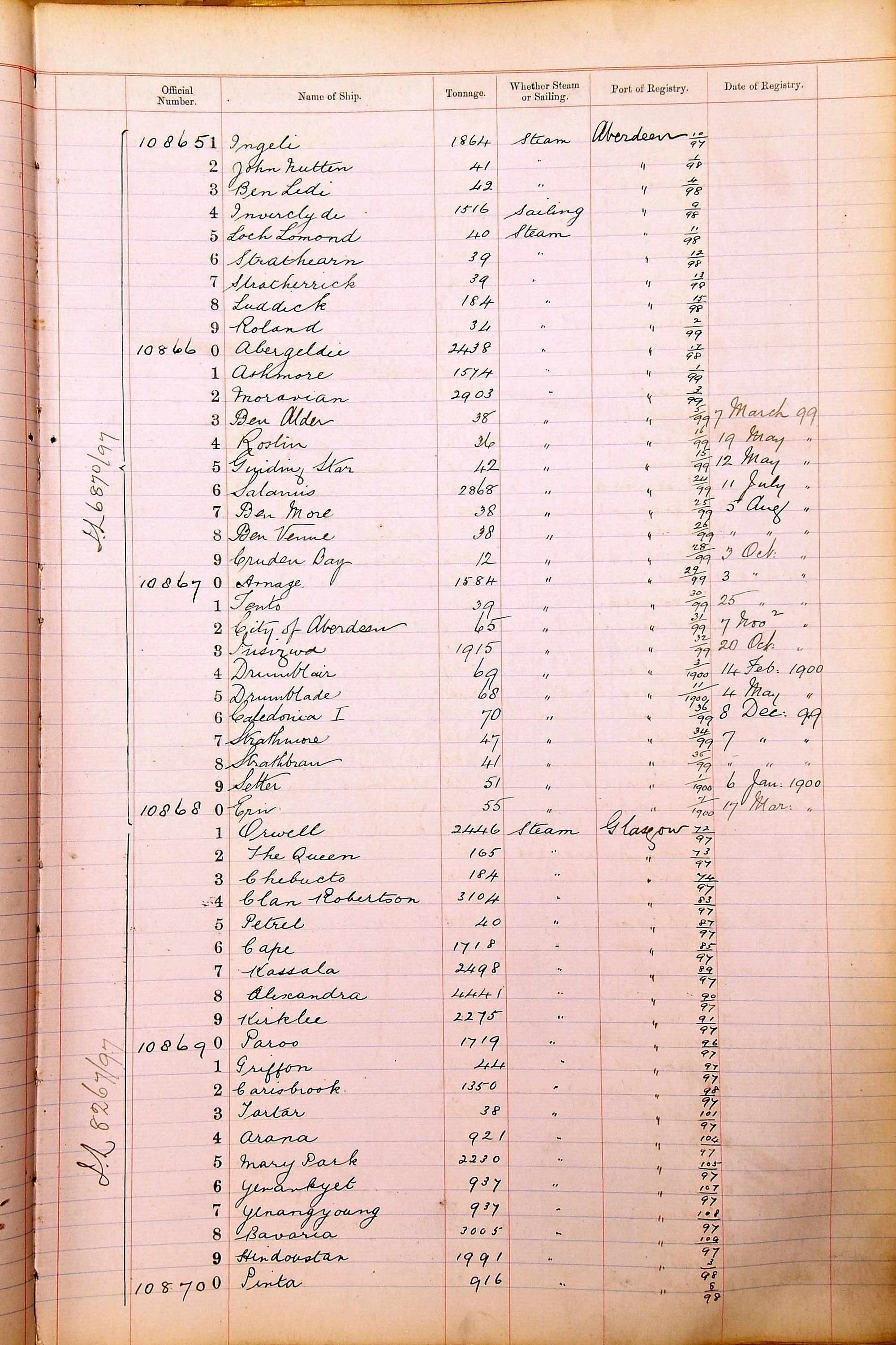 When the system of official numbers began on 16 April 1855, the British Ports of Registry were each allocated batches of official numbers. For official numbers up to 22200 you can see this allocation as a pencil note at the top of the page where the allocation began. A summary of the first allocation is shown here: Initial allocation of official numbers